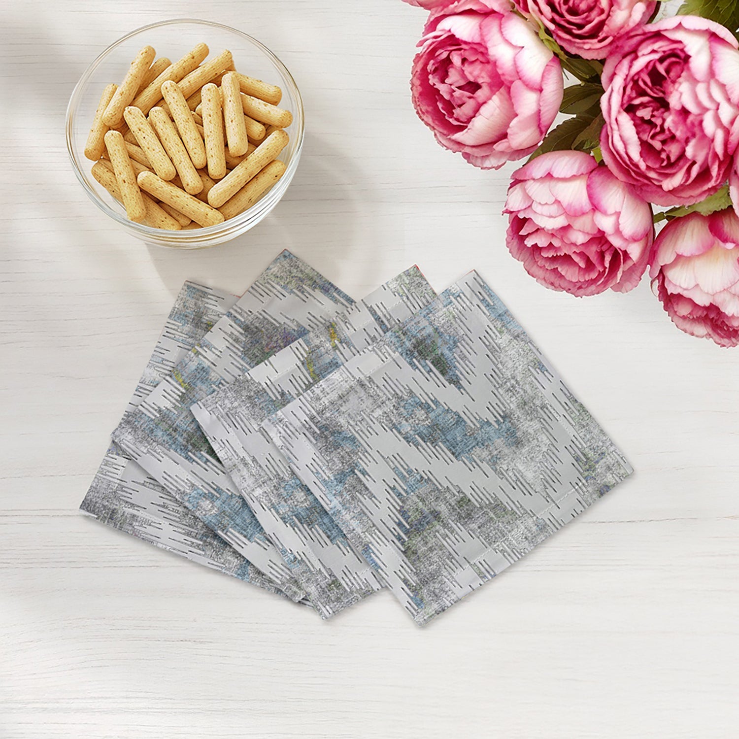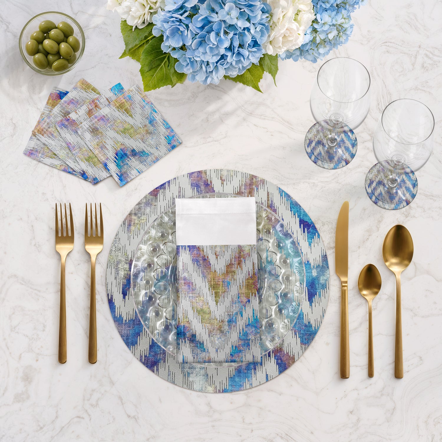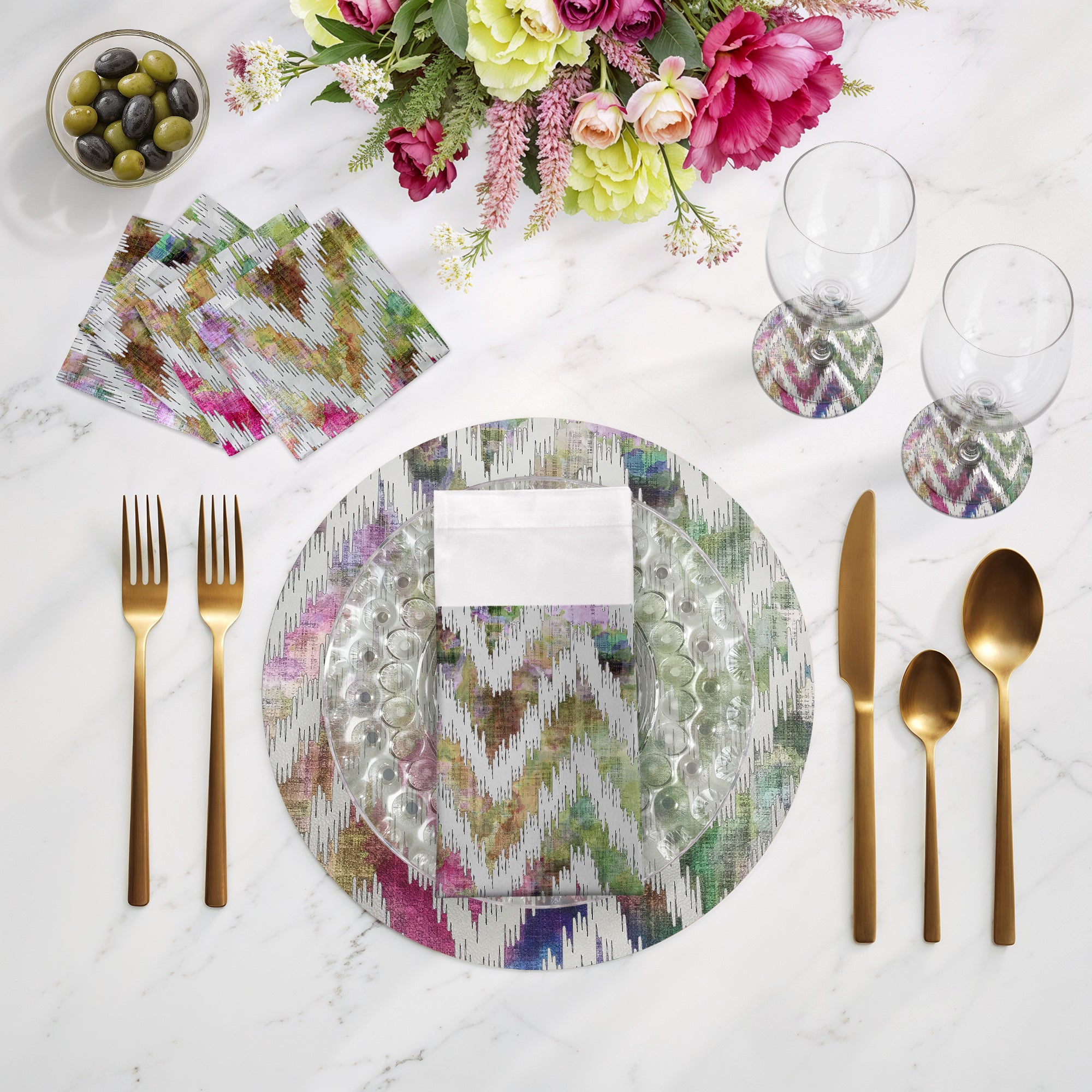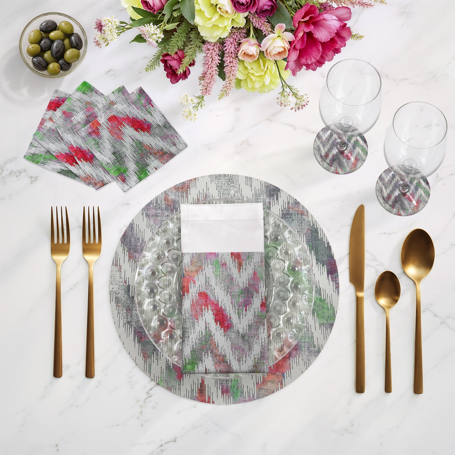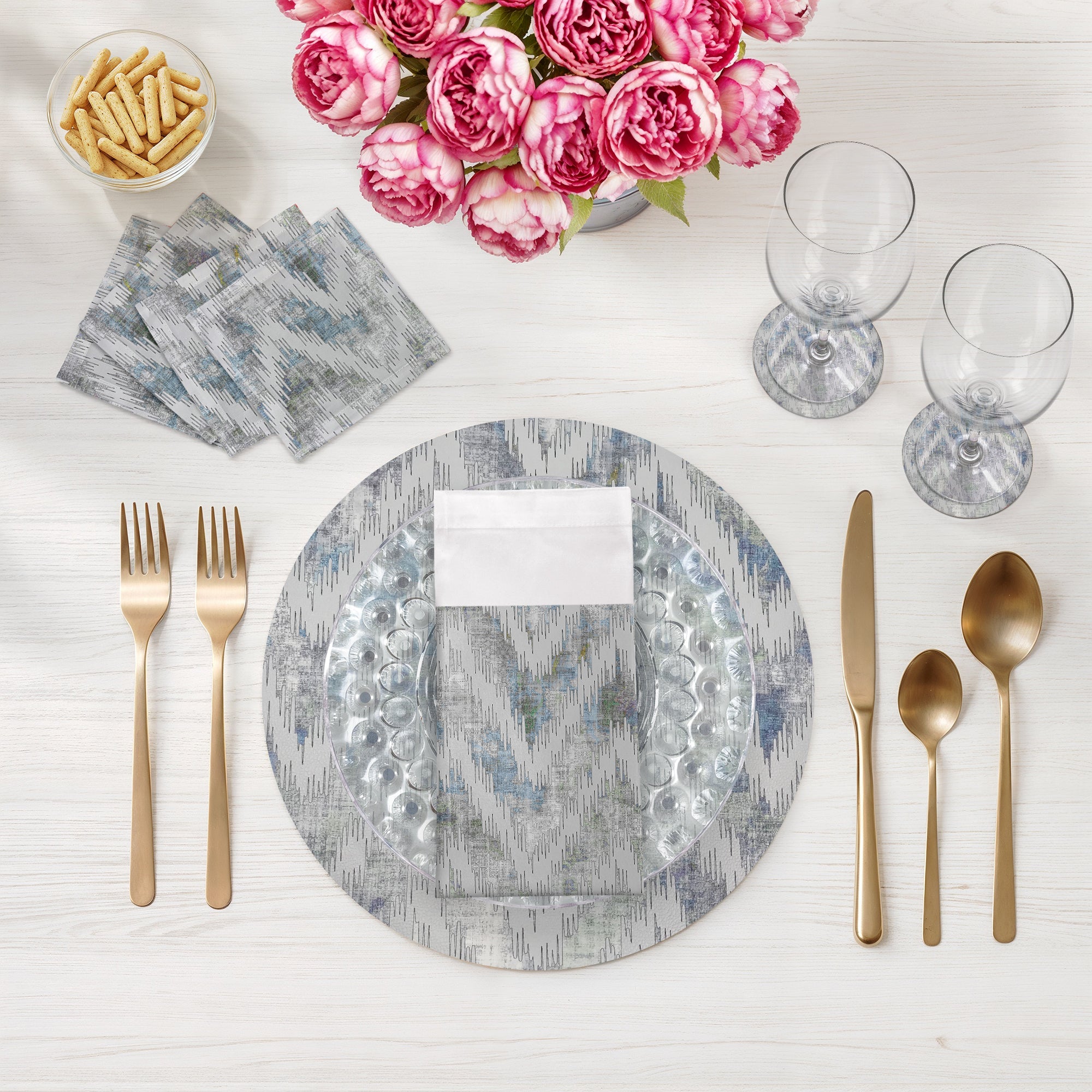Sculpting a rhythmic flow of sharp, intentional lines, these Chevron Cotton Sateen Cocktail Napkins introduce a dynamic structural balance to your arrangement. This bold zigzag movement radiates a sophisticated energy and contemporary soul, bringing a sharp sense of modern luxury to your table.