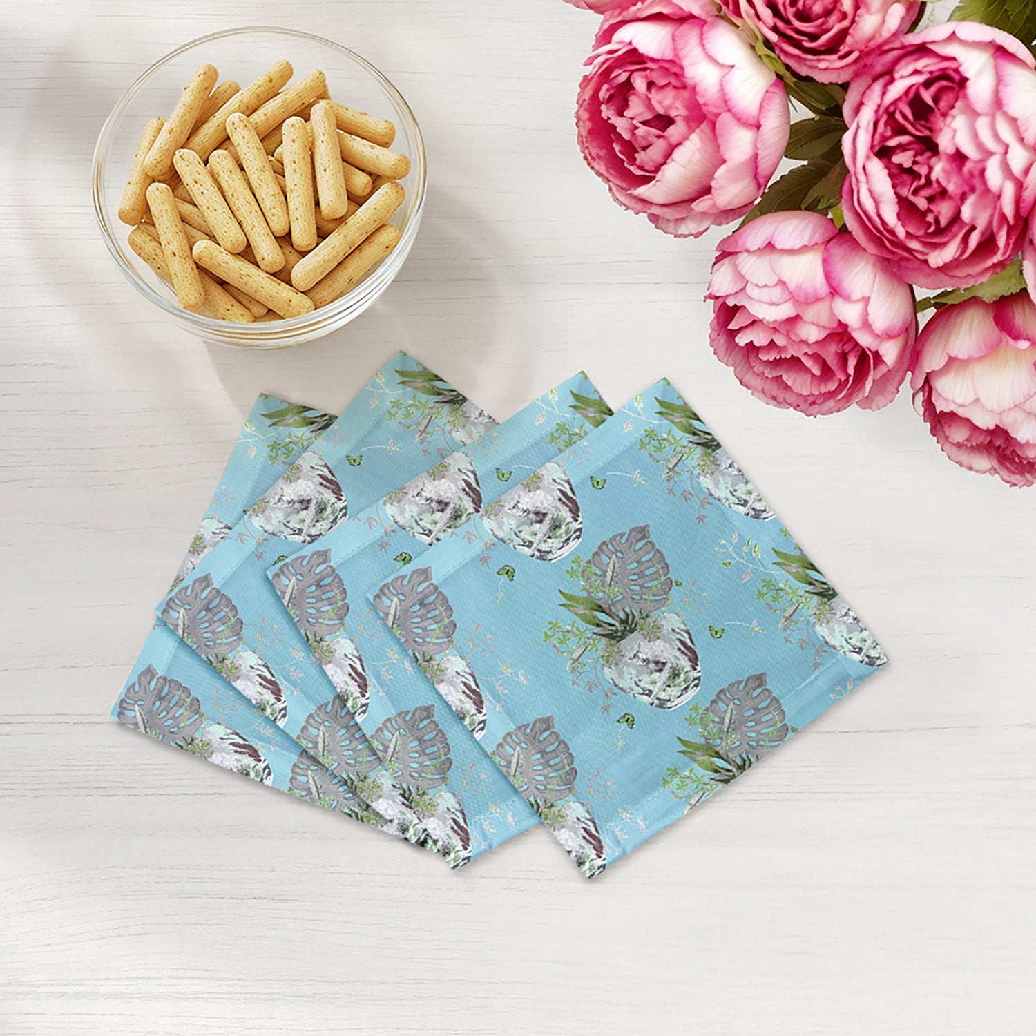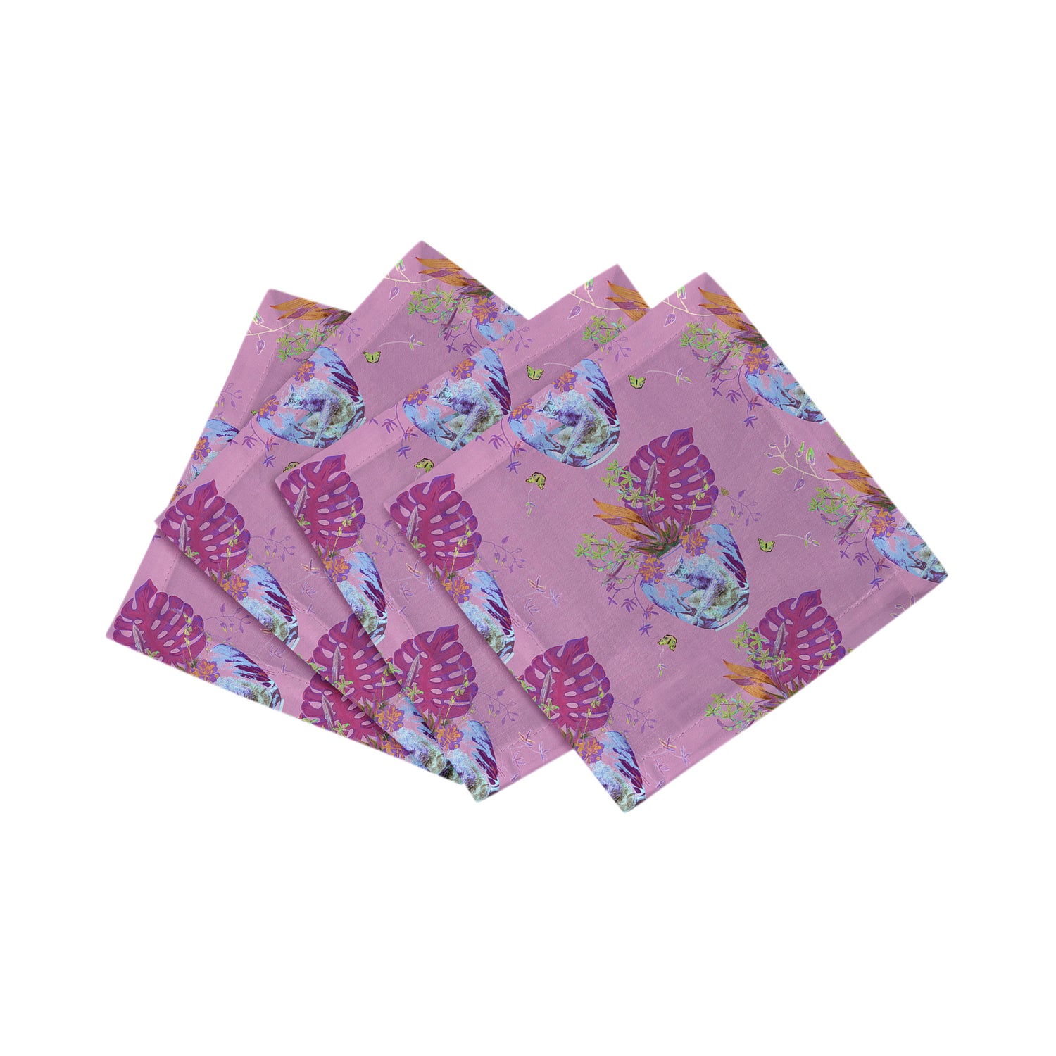 Monkey Small Jungle Cocktail Napkins capture the wild charm of jungle monkeys with untamed energy. Crafted in 6"x6" cotton sateen, these custom cocktail napkins suit both casual and adventurous gatherings. Each set contains four, made in the USA. Their spirited patterns bring bold allure, proving that unique cocktail napkins can turn the table into a lively escape.