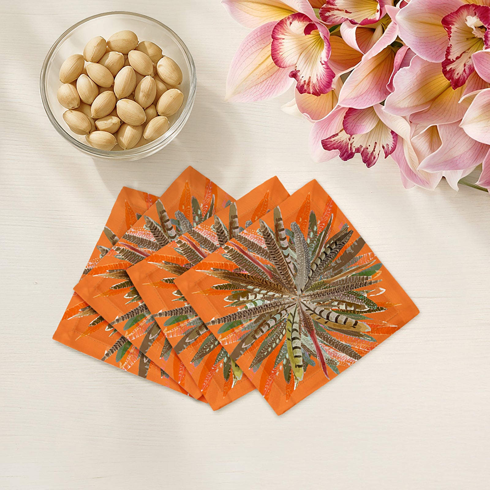 Pheasant Feathers Cotton Sateen Cocktail Napkins