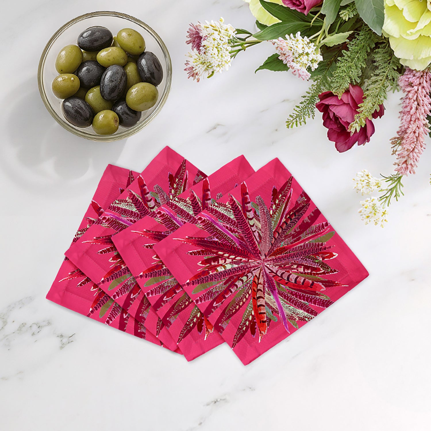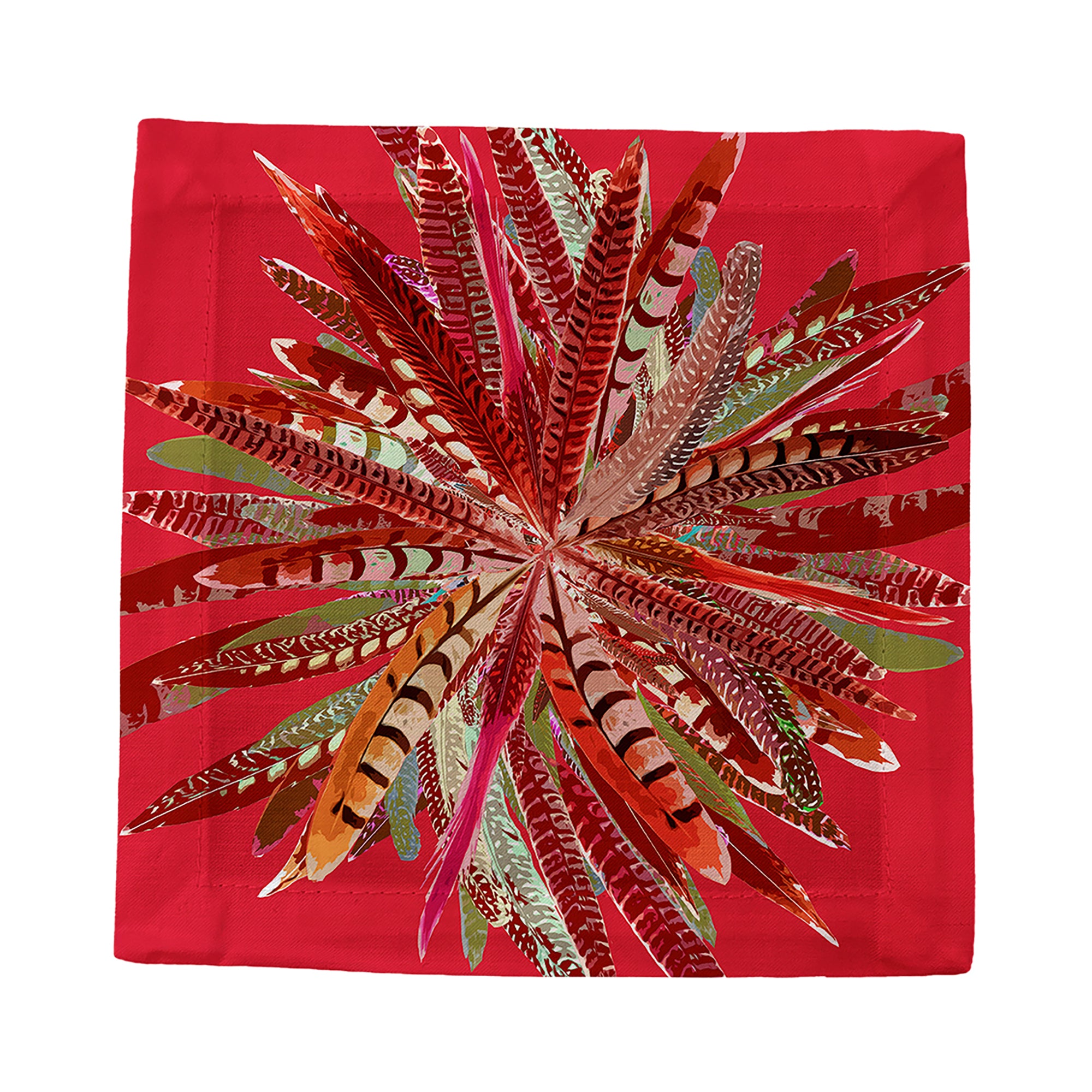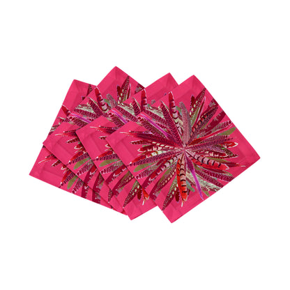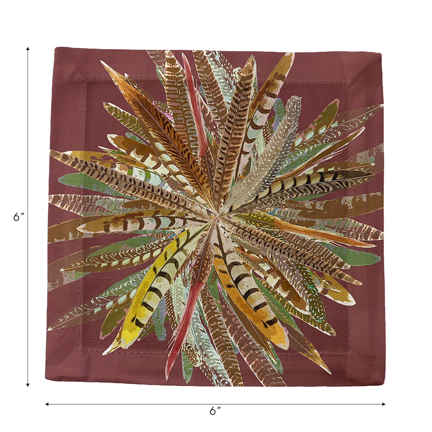 Pheasant Feathers Cocktail Napkins highlight intricate pheasant feather patterns, symbolizing natural beauty and elegance. Crafted in a Square from cotton sateen, these custom cocktail napkins add a refined touch to every meal. Each set of four cocktail napkins, made in the USA, celebrates the artistry of nature.