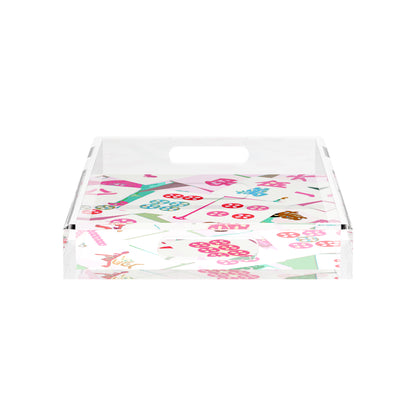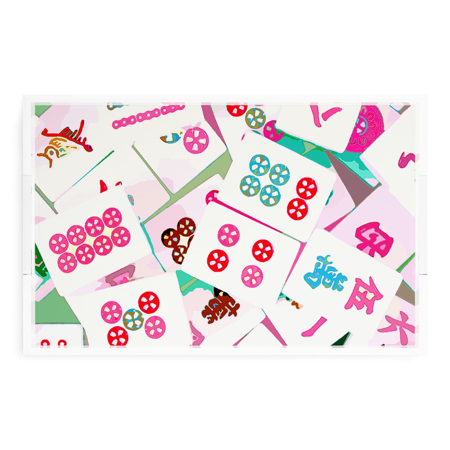Mahjong Abstract Pinks Mahjong Rectangle Decorative Tray