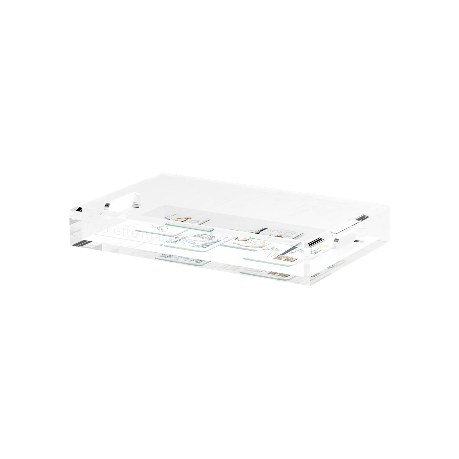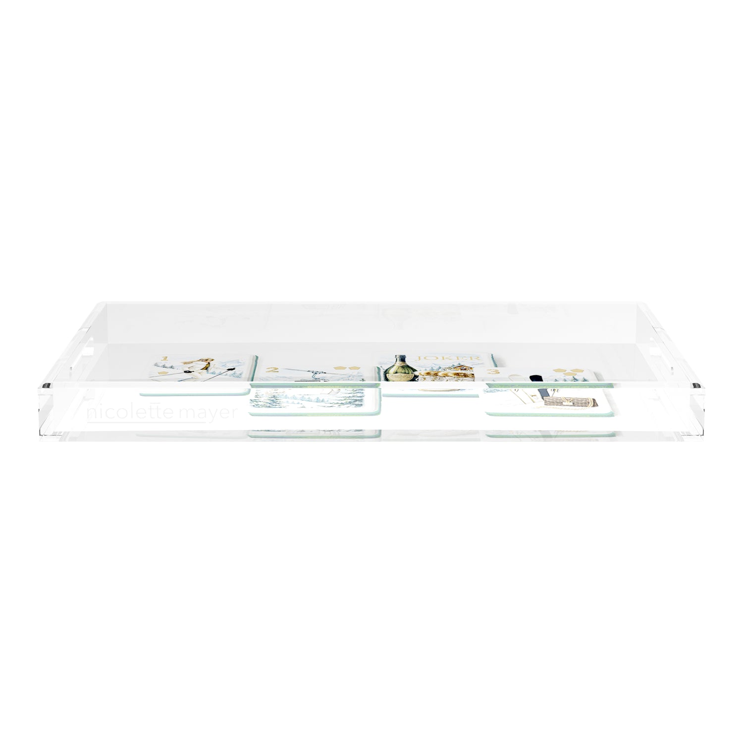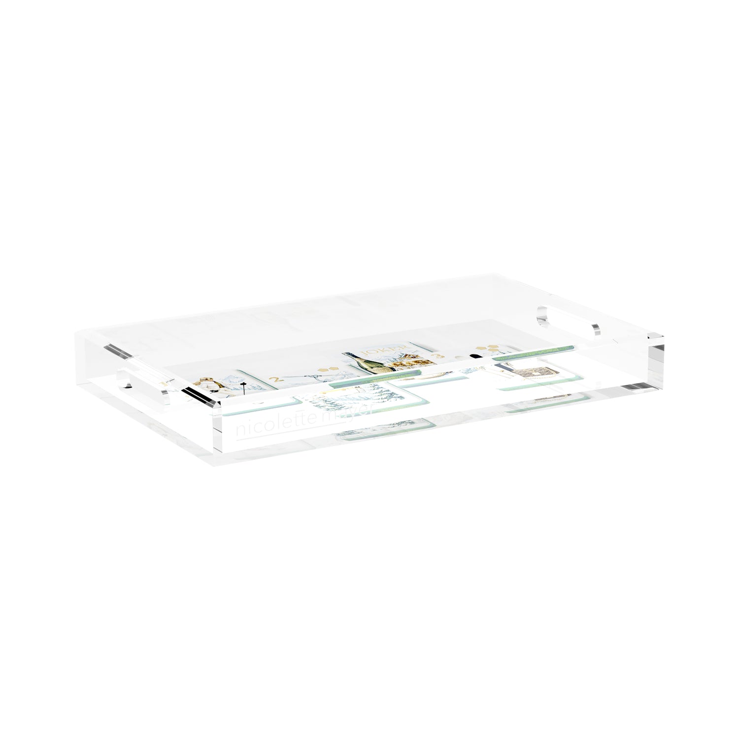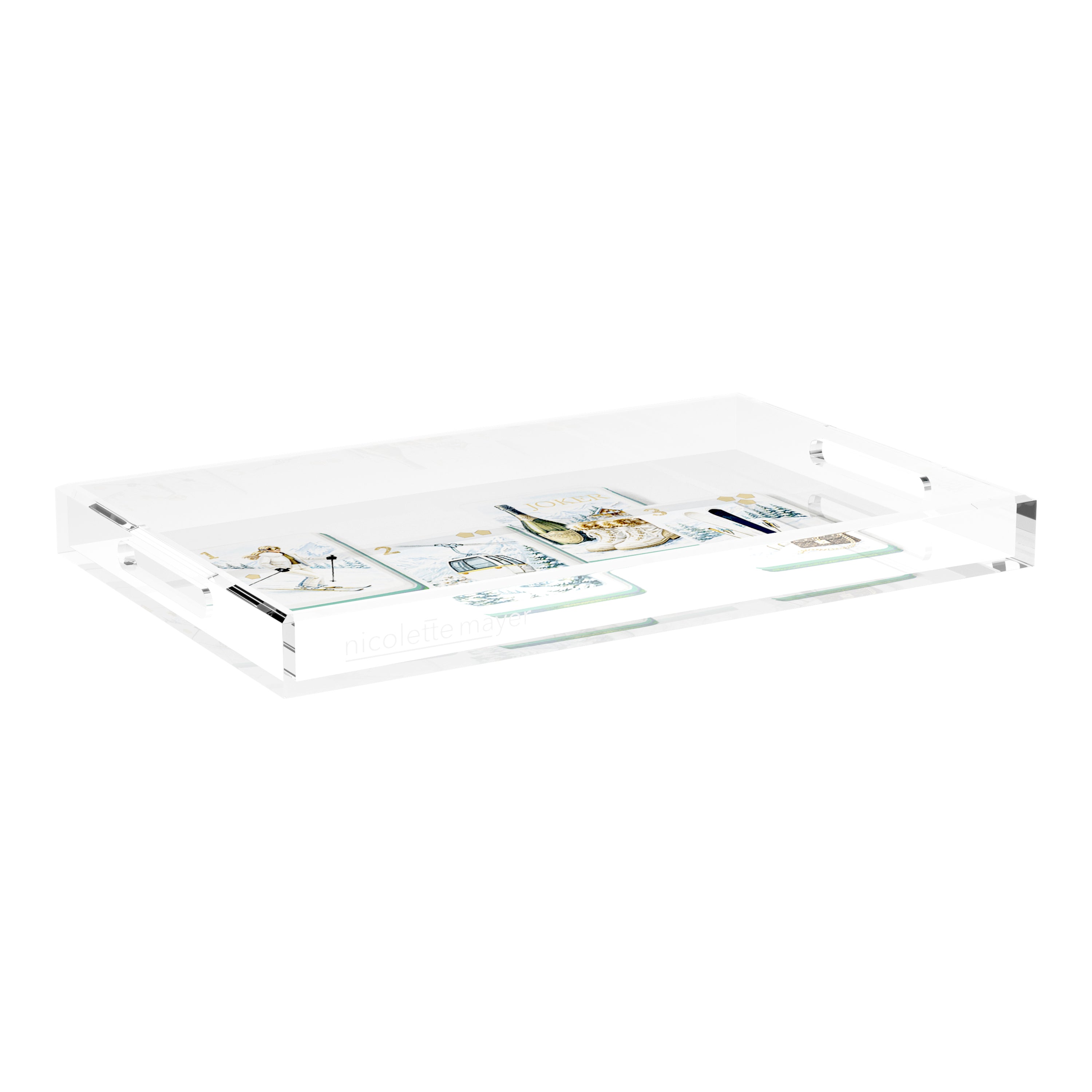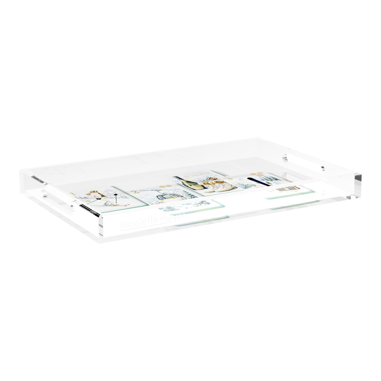 This extraordinary acrylic tray is chic and beautiful for any occasion. With our signature patterns on the back of the tray, Nicolette Mayer Trays elevate everyday entertaining. For use for your Bar, cocktails, coffee, perfume bottles, etc.