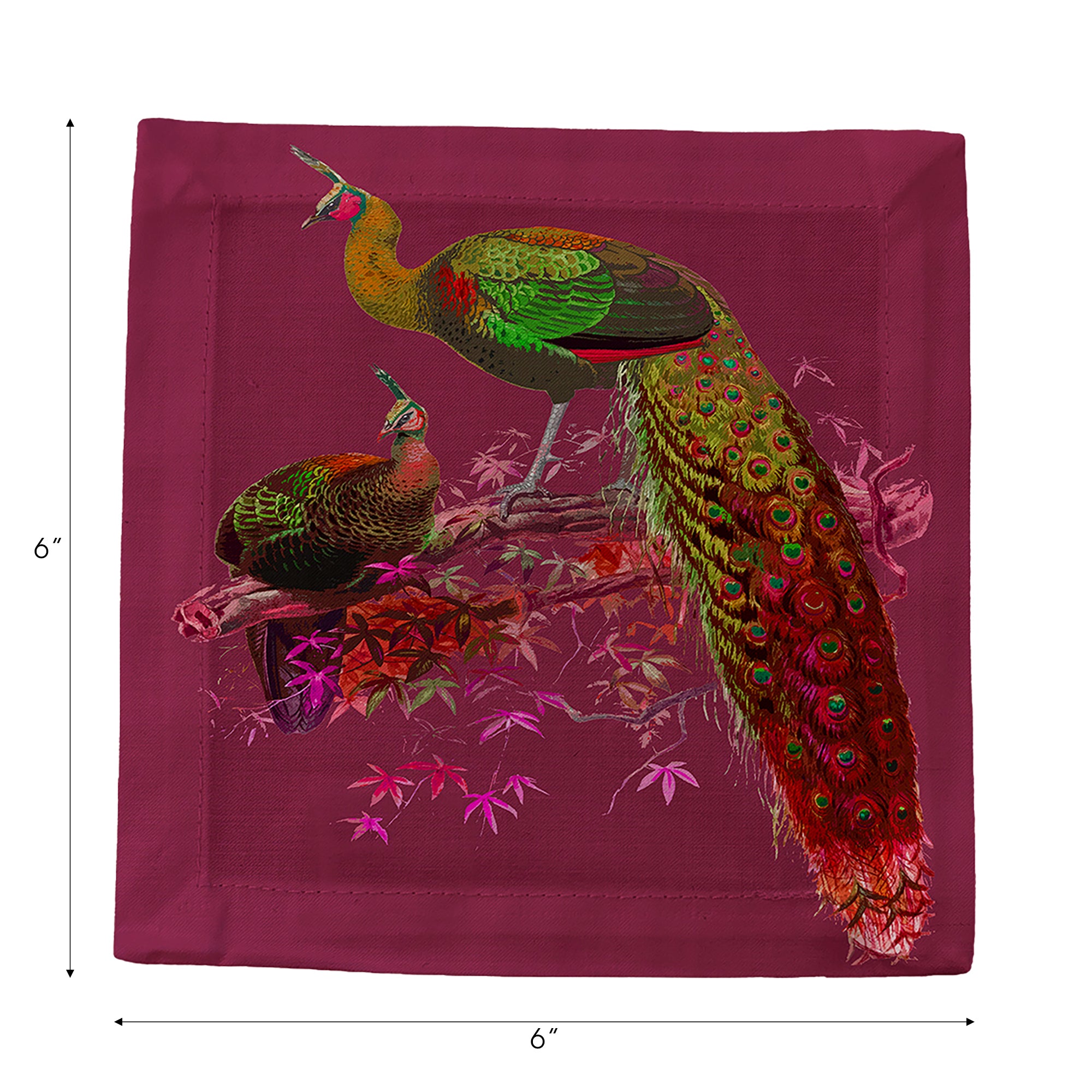 Family Pheasants Cotton Sateen Cocktail Napkins