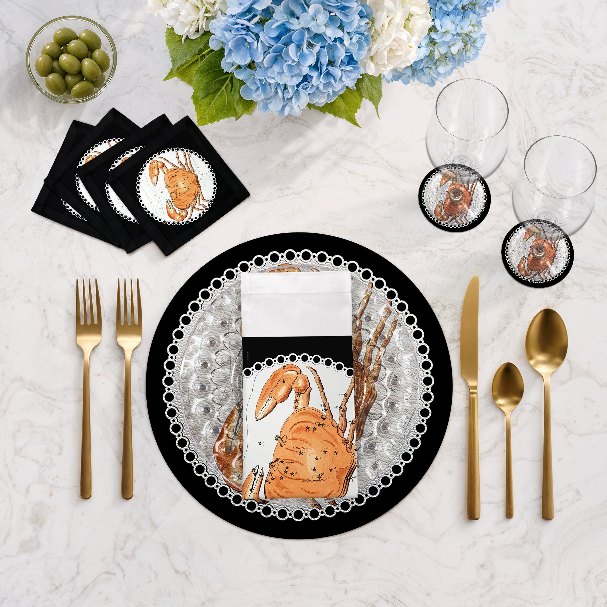 Zodiac Cancer Cotton Sateen Cocktail Napkins