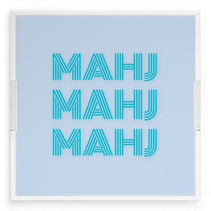Mahj Mahj Mahj Blue Mahjong Square Decorative Tray