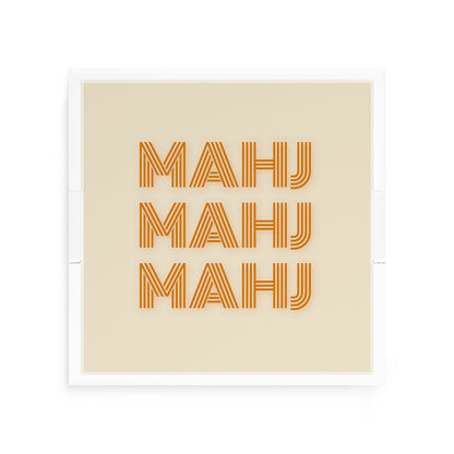 Echoing the rhythmic excitement of the tiles, Mahj Mahj Mahj presents a captivating repetition of linear typography that mirrors the focused energy of a winning strategy. The design embraces a bold Pop Art esthetic, bringing a sculptural and vibrant soul to your game night that feels both timelessly classic and strikingly modern.
