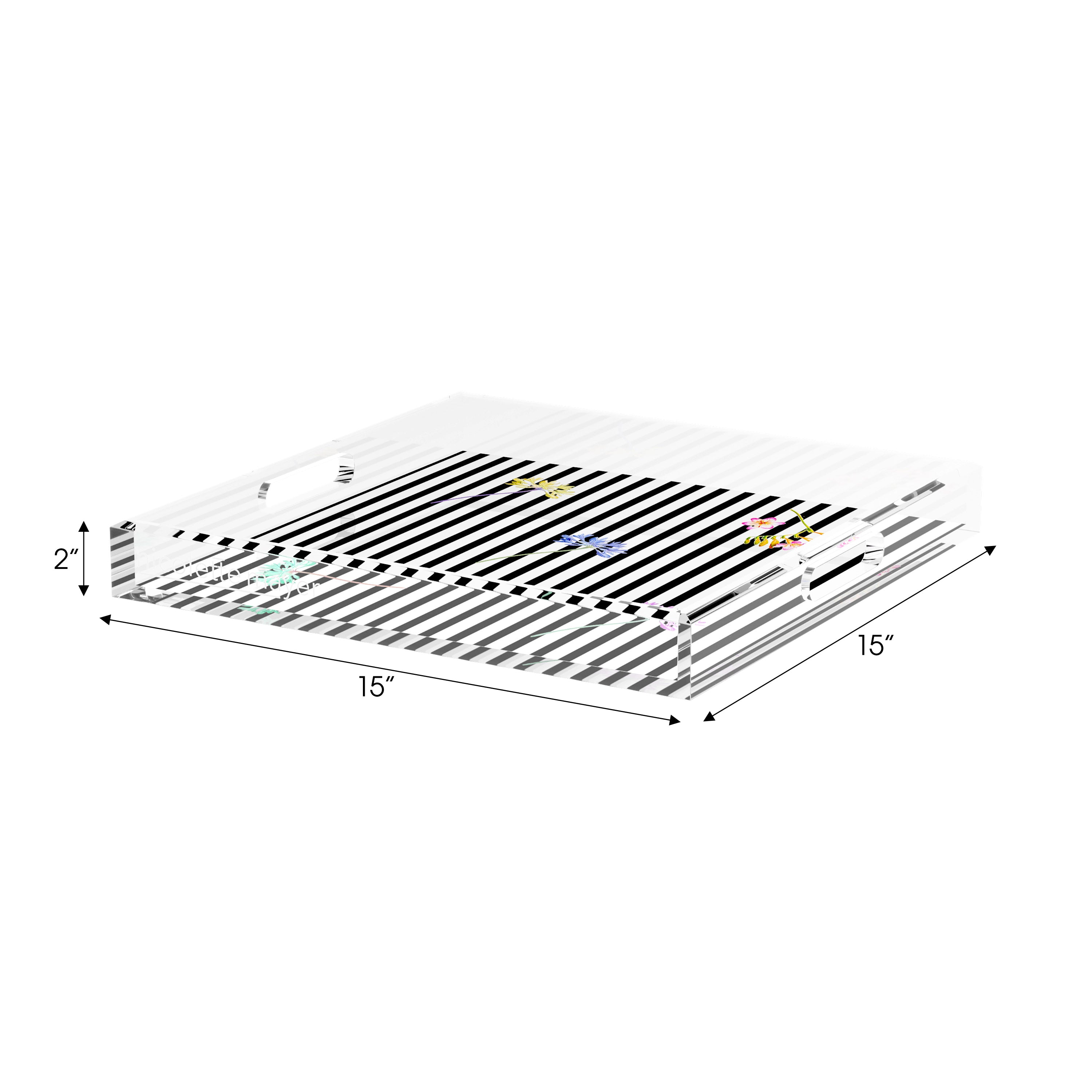 Black Floral Stripes 15X15 Acrylic Tray - nicolettemayer.com