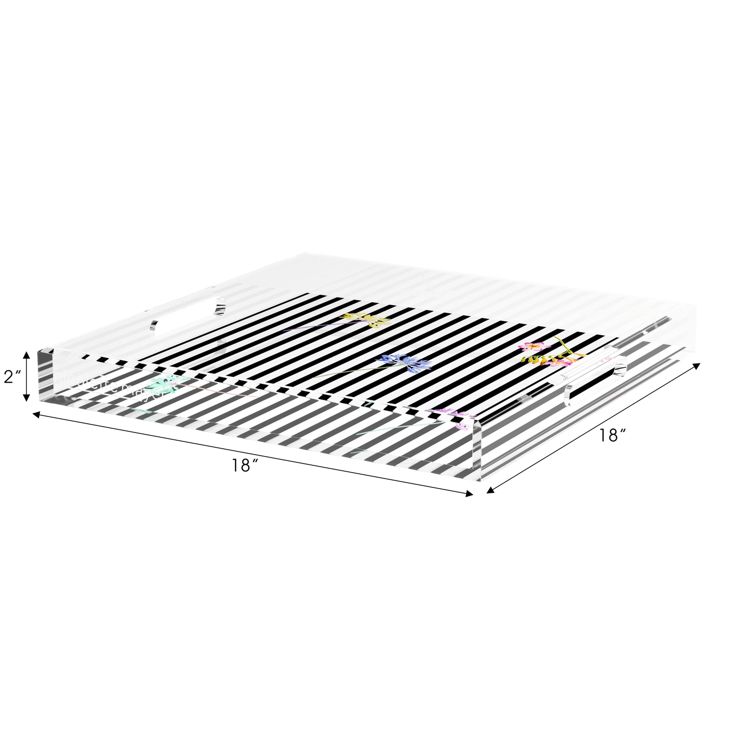Black Floral Stripes 18X18 Acrylic Tray - nicolettemayer.com