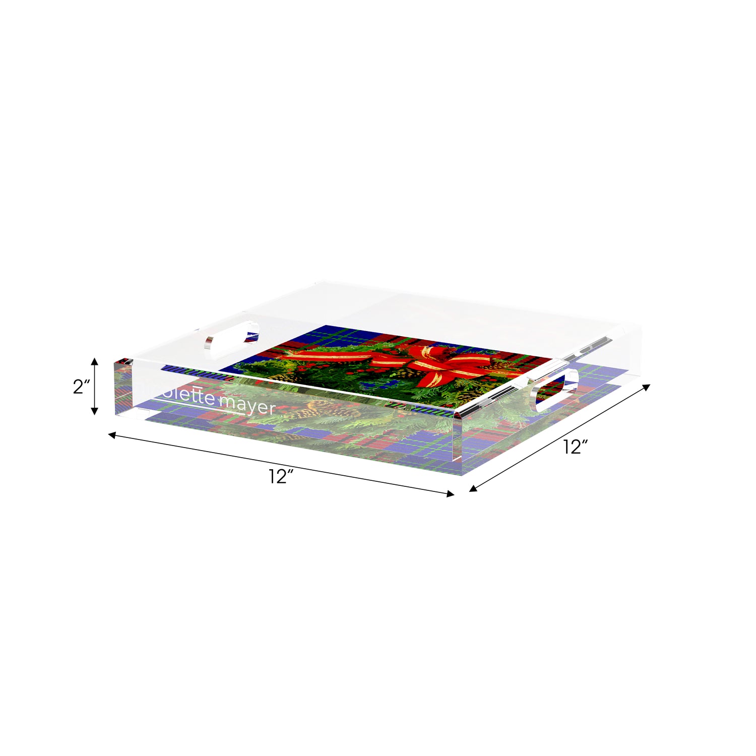 Christmas Wreath Tartan Green Acrylic Square Decorative Tray