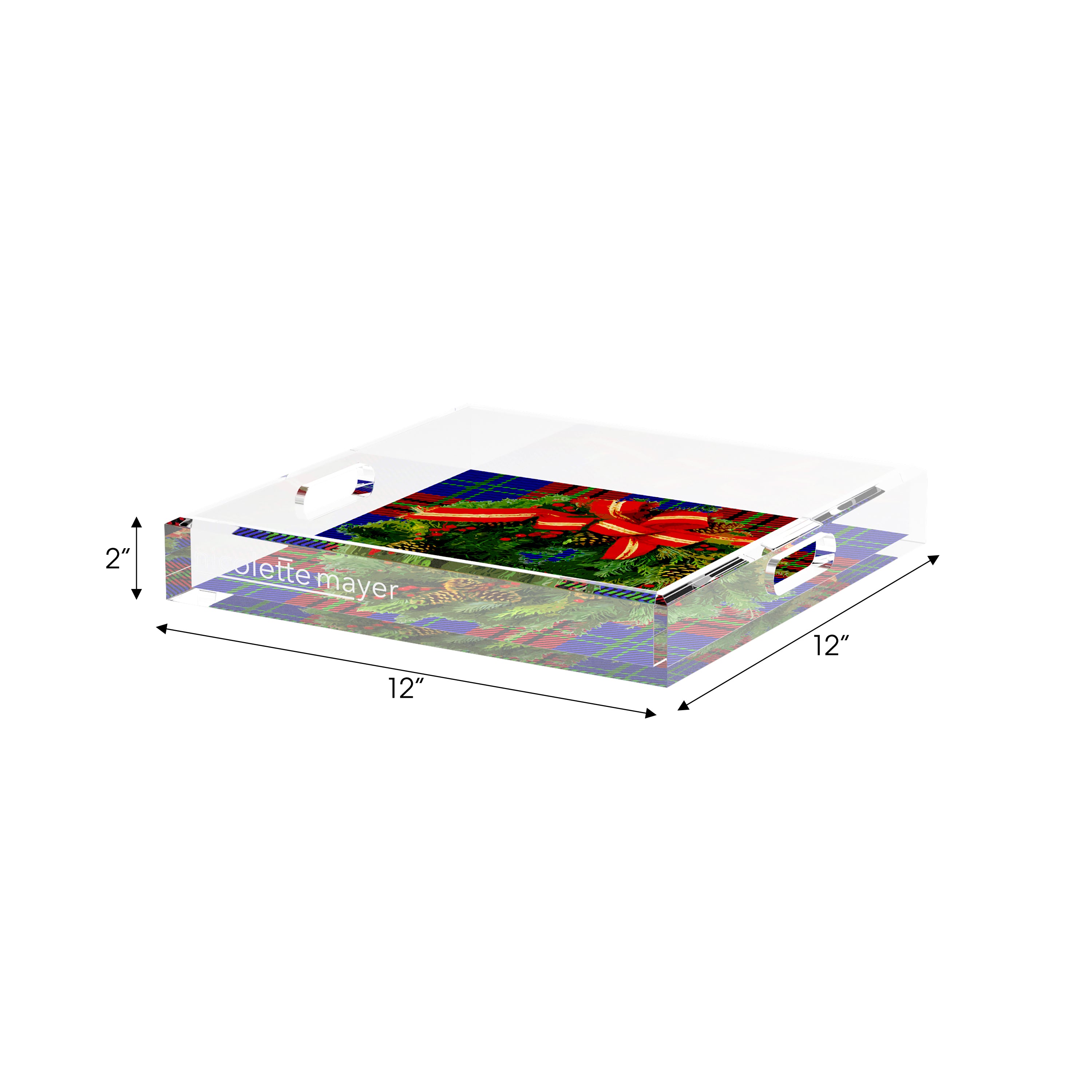 Christmas Wreath Tartan Green 12X12 Acrylic Tray - nicolettemayer.com