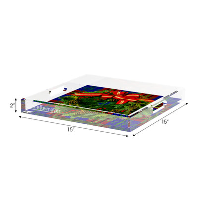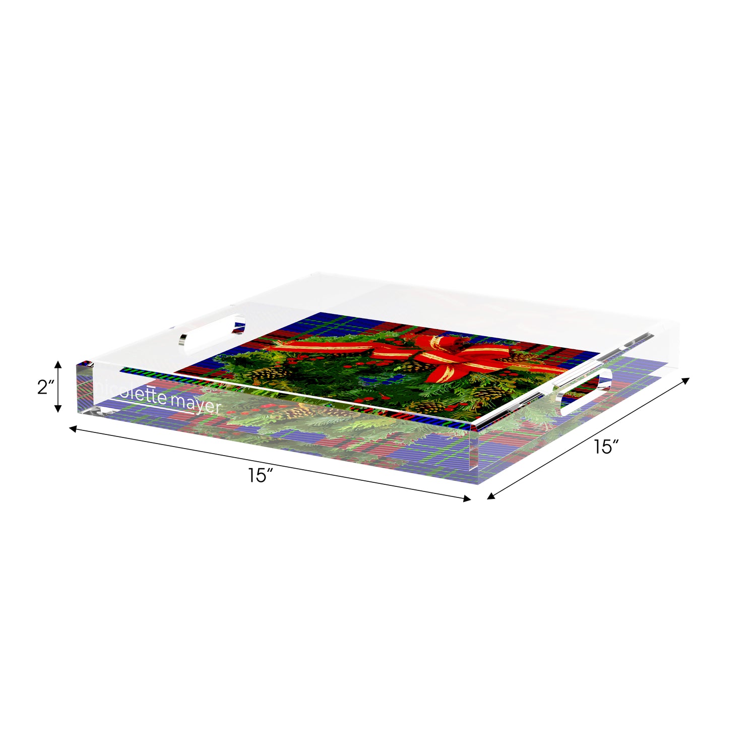 Christmas Wreath Tartan Green 15X15 Acrylic Tray - nicolettemayer.com