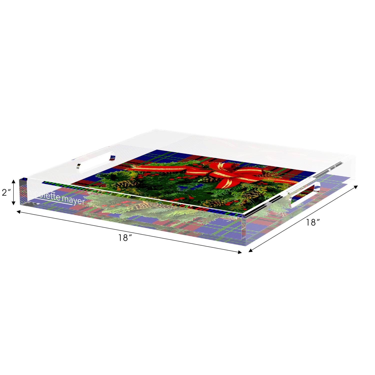 Christmas Wreath Tartan Green 18X18 Acrylic Tray - nicolettemayer.com