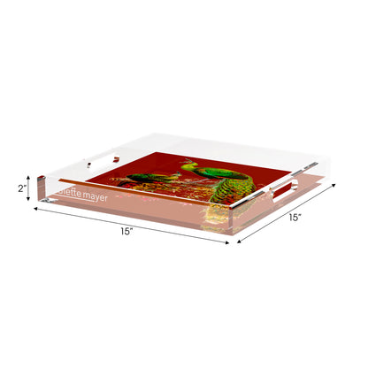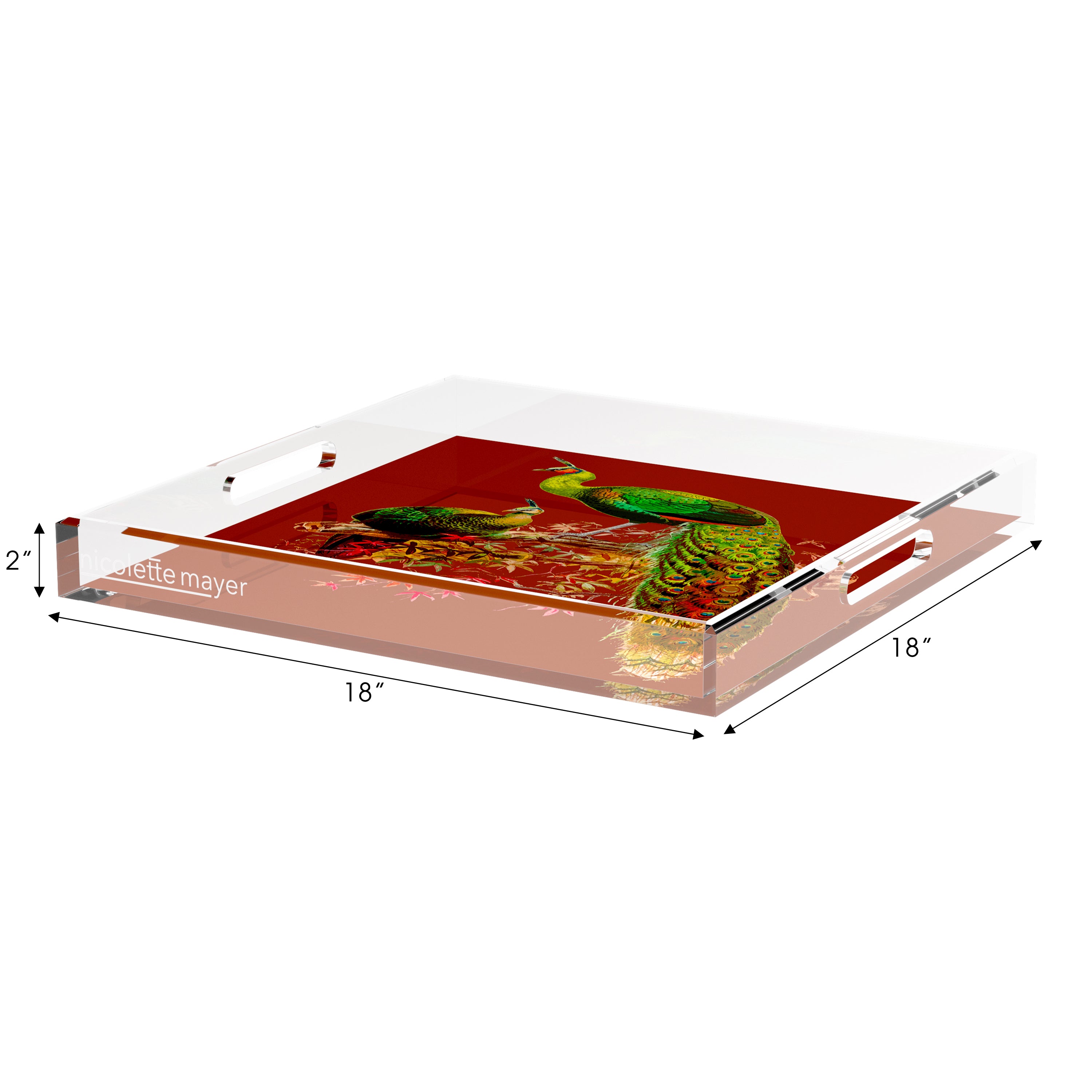 Introduce a stately element of nature-inspired elegance to your entertaining with this striking Family Pheasants Acrylic Square Decorative Tray. The signature pattern, applied to the reverse, features a majestic pair of crested pheasants perched on a branch, their richly textured plumage dramatically offset by a sophisticated background. This decorative tray instantly elevates the atmosphere of your space, whether used for serving guests at your bar, organizing coffee or tea service essentials, or simply displayed as a distinctive, art-driven accent that commands attention in any refined setting.