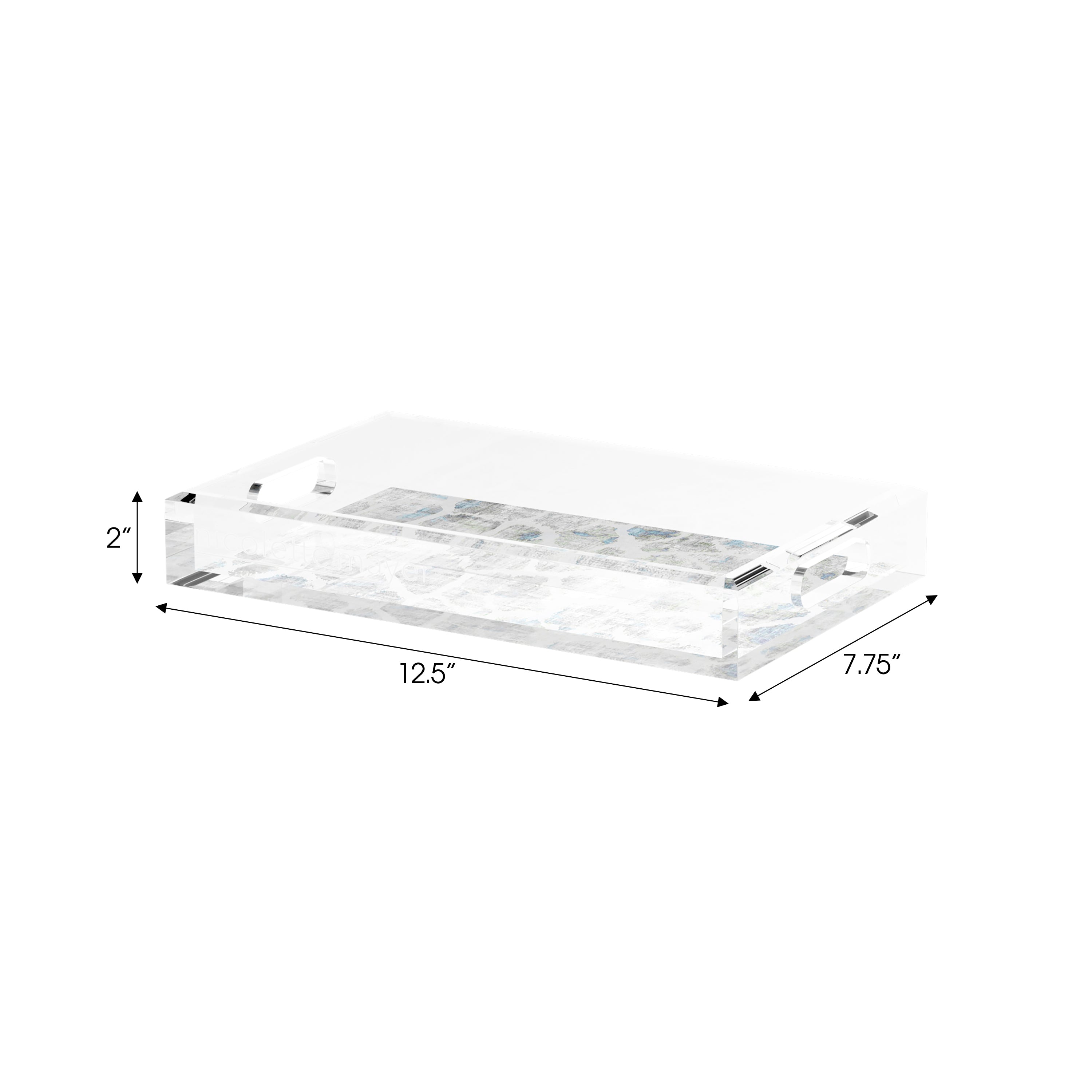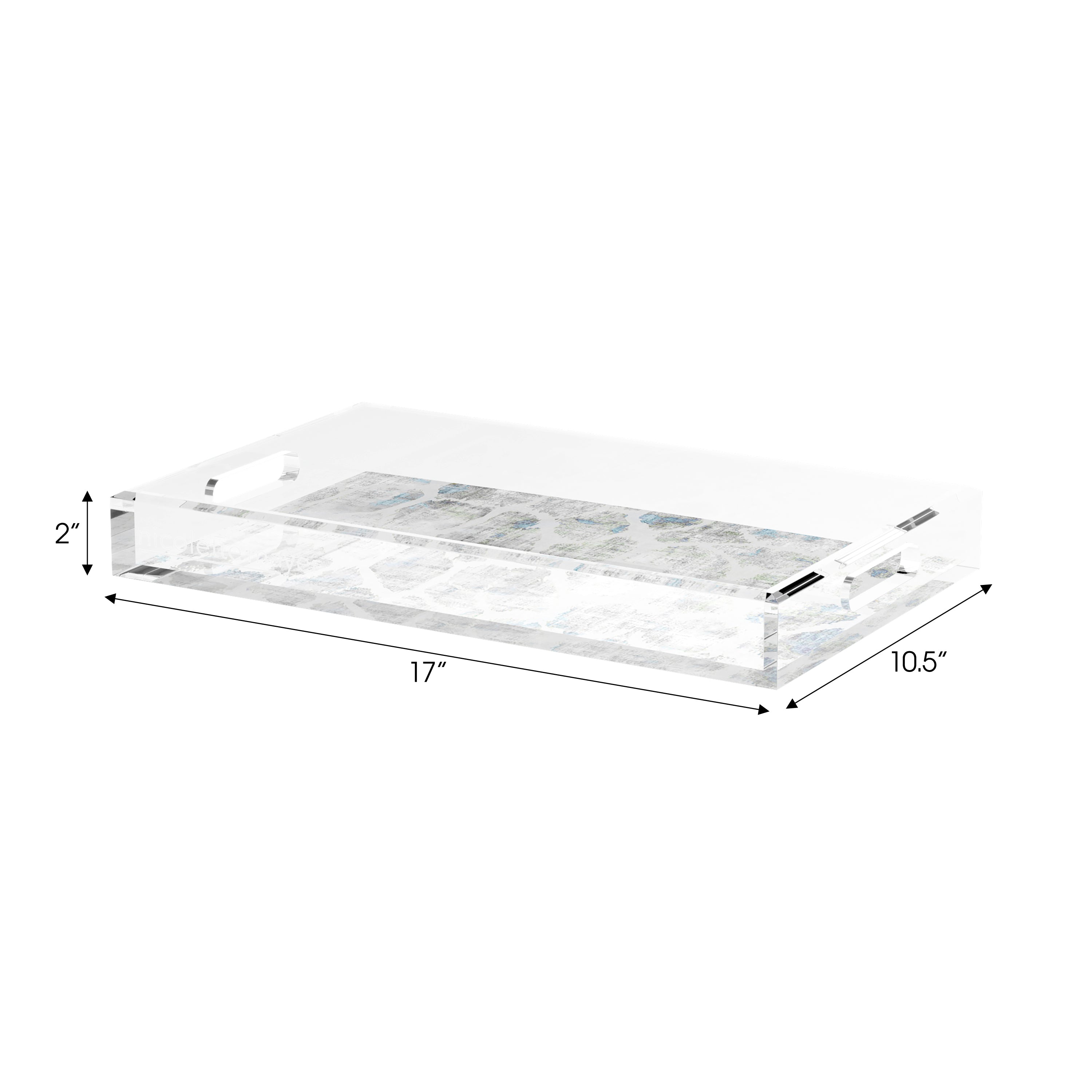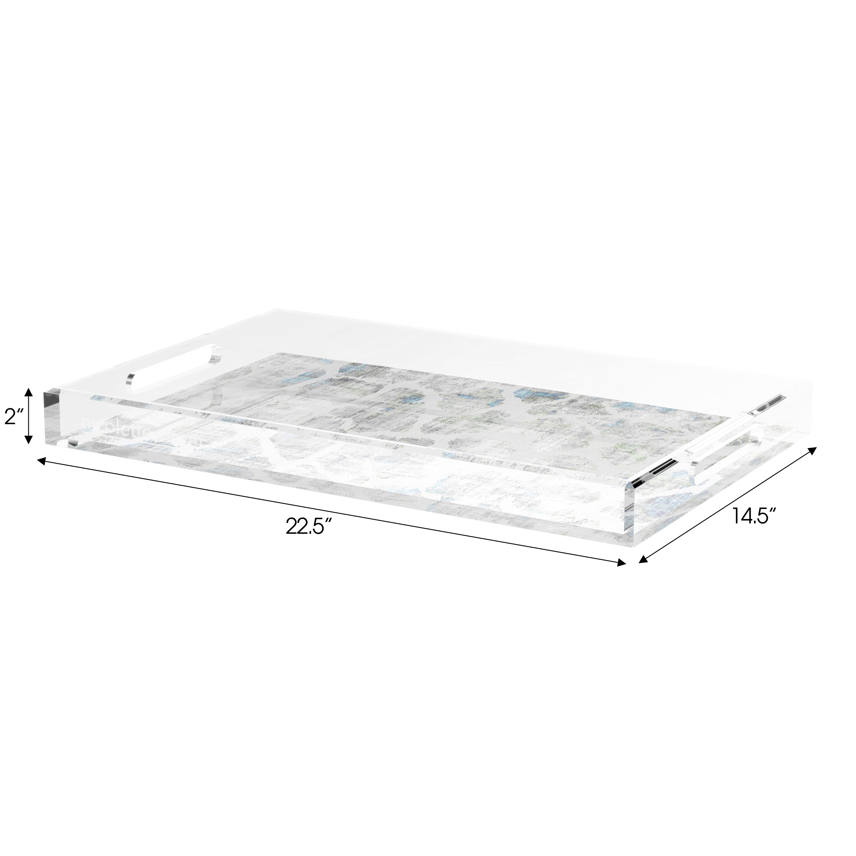 Reveal the timeless allure of animal skin motifs with this sophisticated Giraffe Opulence Acrylic Rectangle Decorative Tray. The reverse side features a signature pattern that showcases an elevated take on an animal motif, utilizing a distressed, watercolor-like finish to create a sophisticated, fragmented design. This decorative tray instantly introduces an element of quiet luxury and visual interest, perfect for serving cocktails at your bar, organizing coffee accessories, or grounding a stack of art books on a refined console. The unique, subtle pattern makes it a versatile piece of home décor.