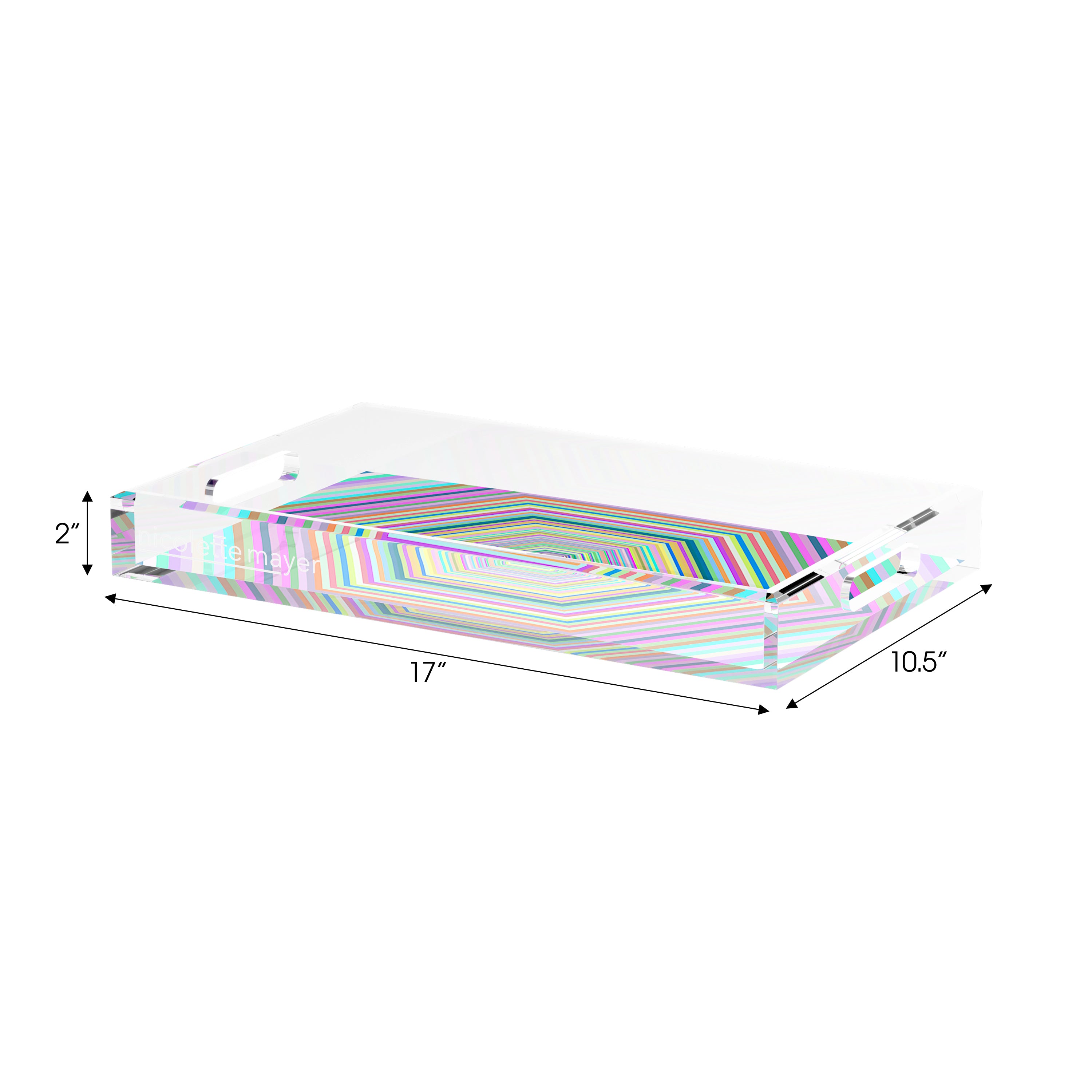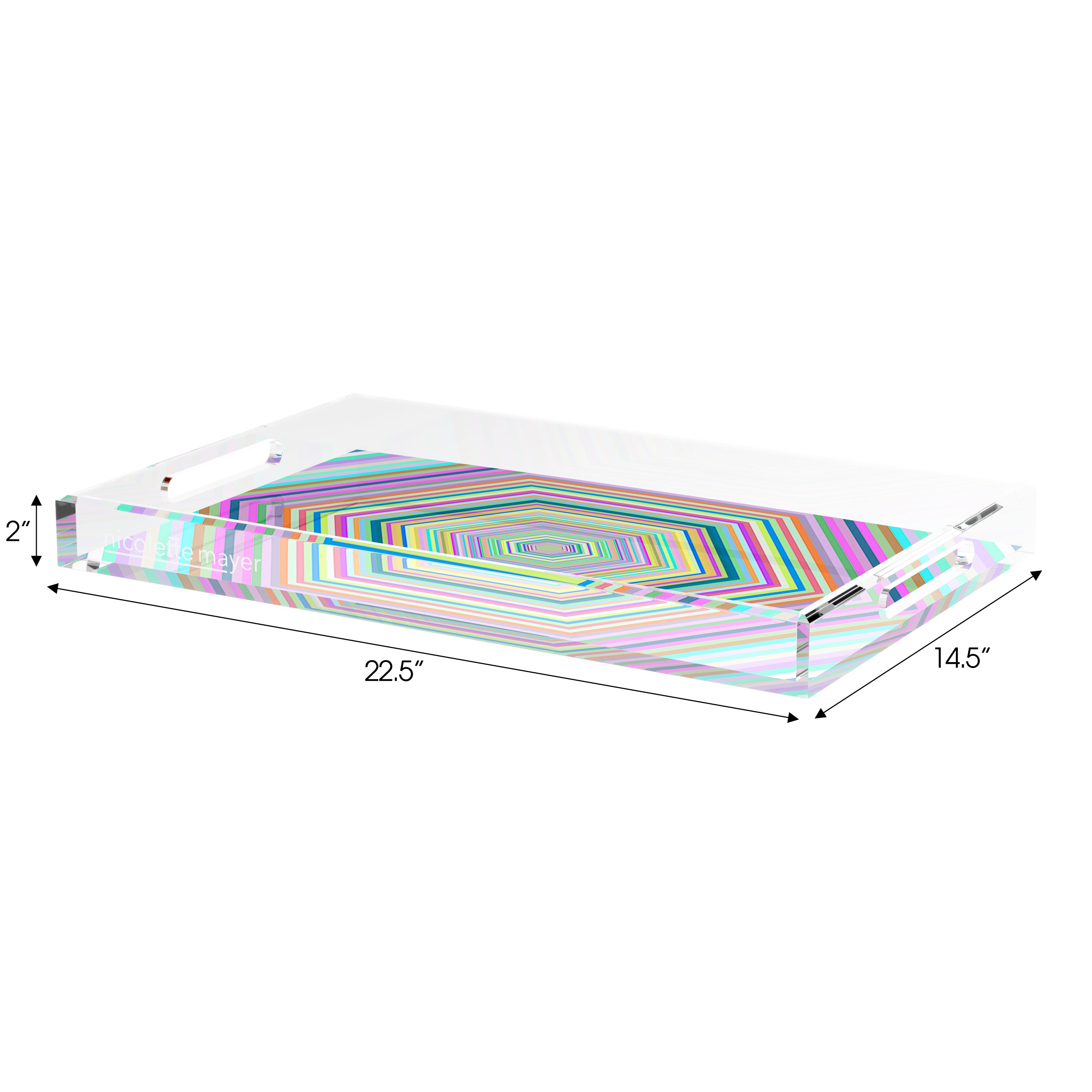 This extraordinary acrylic tray is chic and beautiful for any occasion. With our signature patterns on the back of the tray, Nicolette Mayer Trays elevate everyday entertaining. For use for your Bar, cocktails, coffee, perfume bottles, etc.