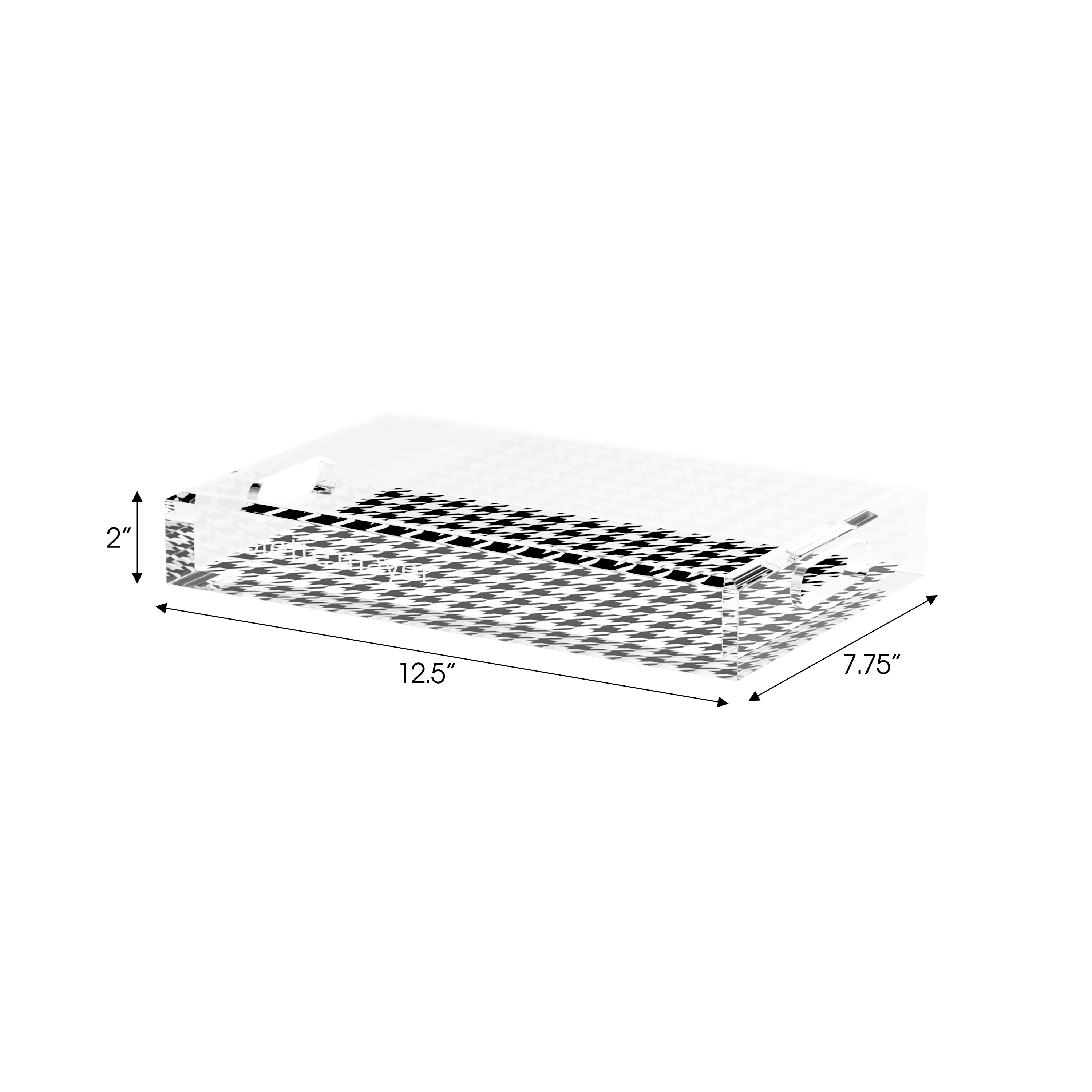 Houndstooth Black White Acrylic Rectangle Decorative Tray