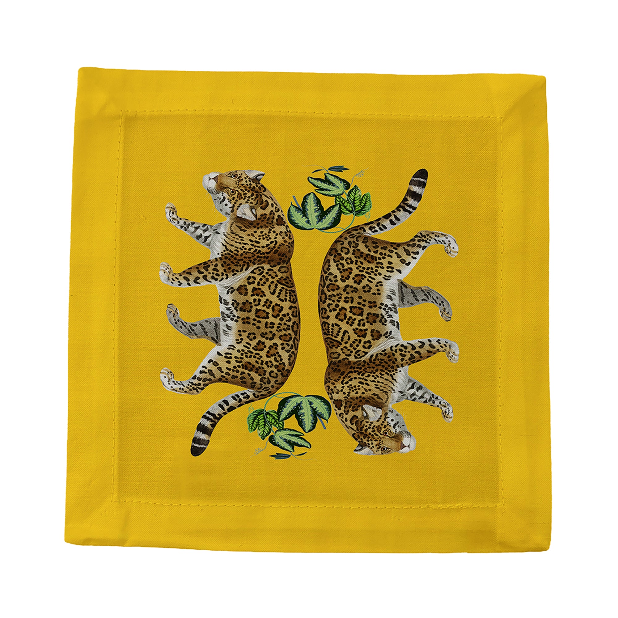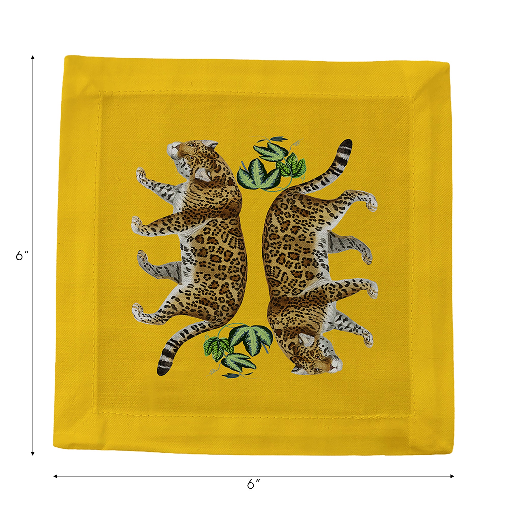 Leopard Seeing Double Cotton Sateen Cocktail Napkins