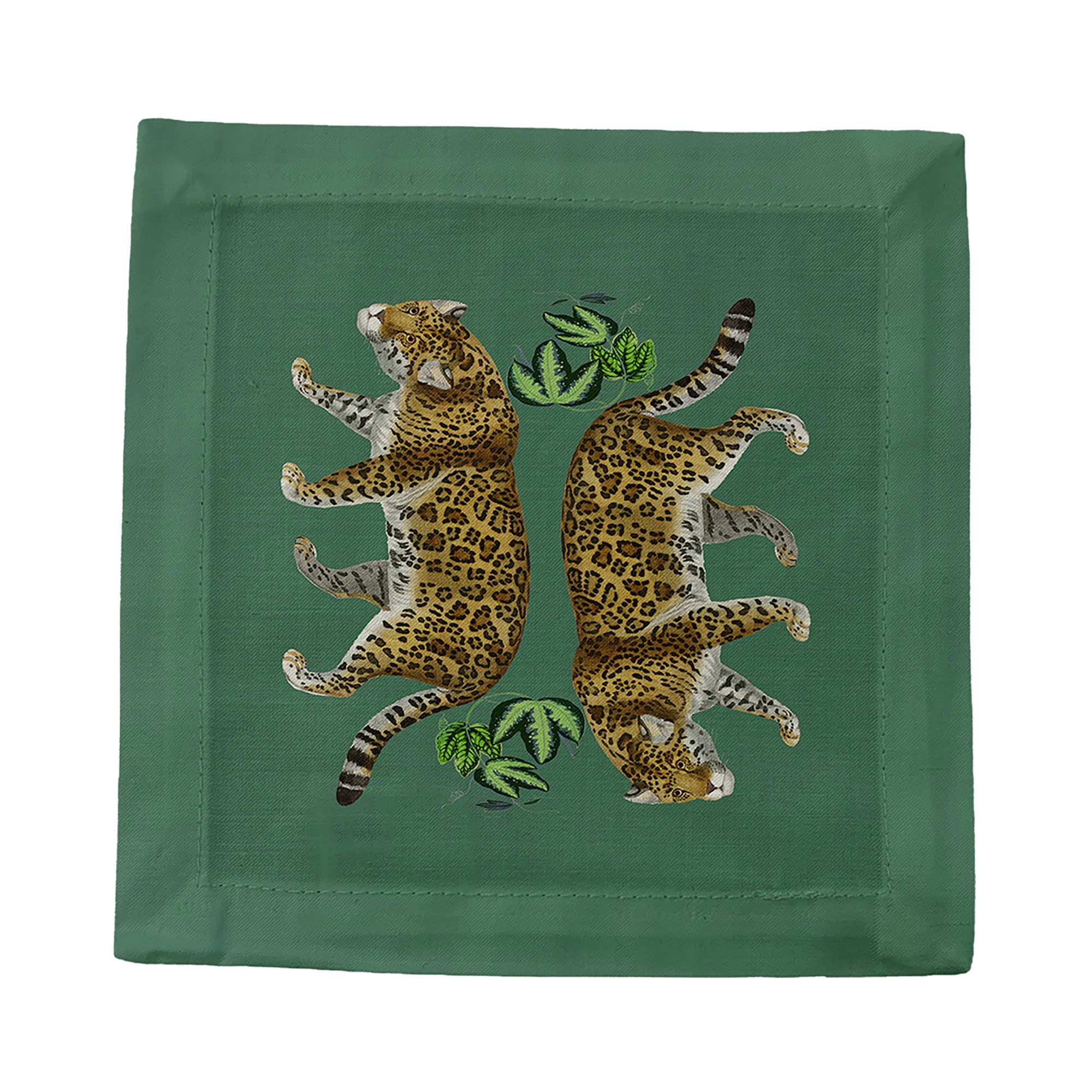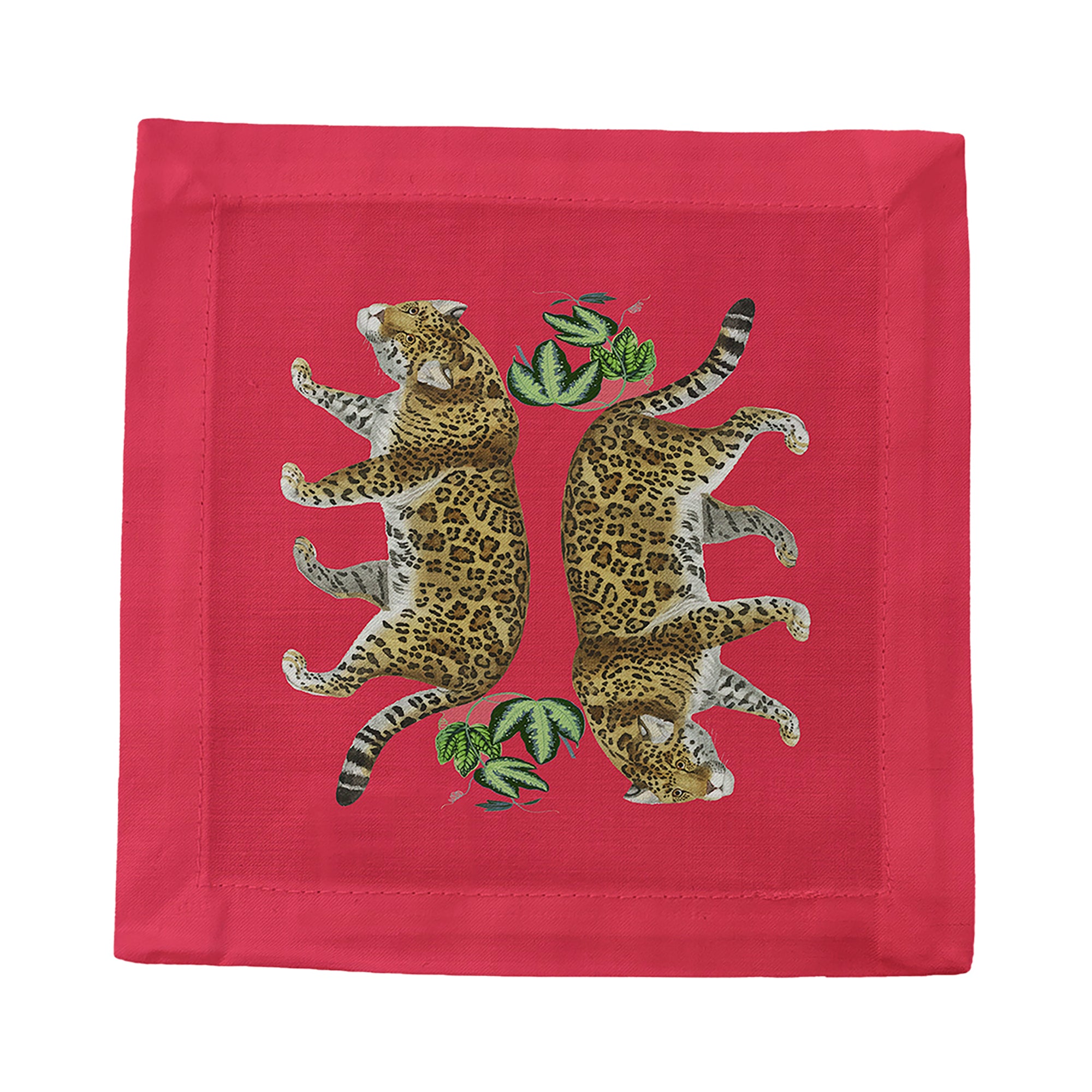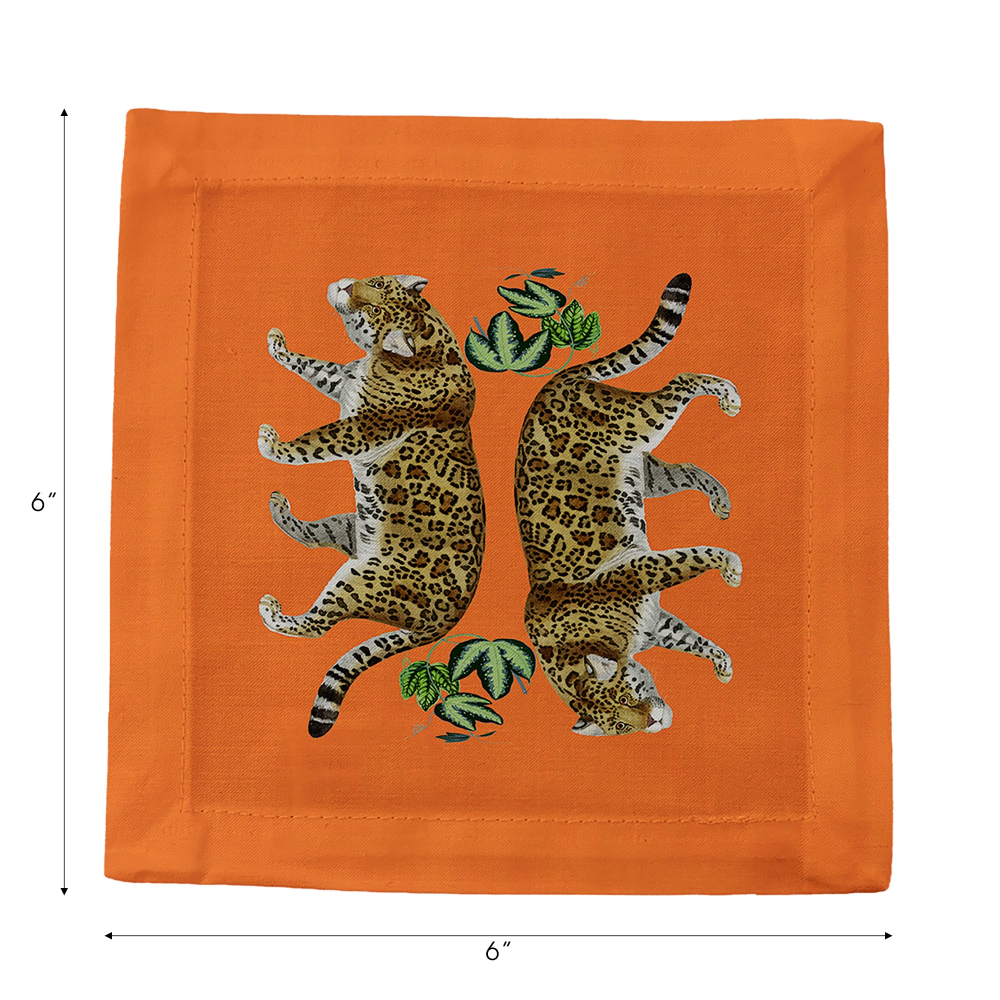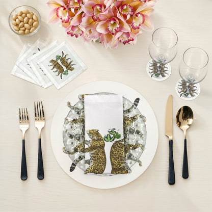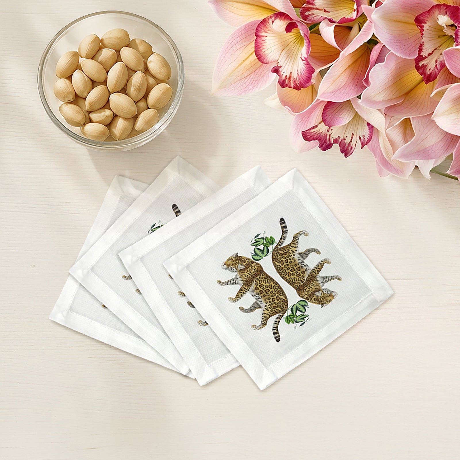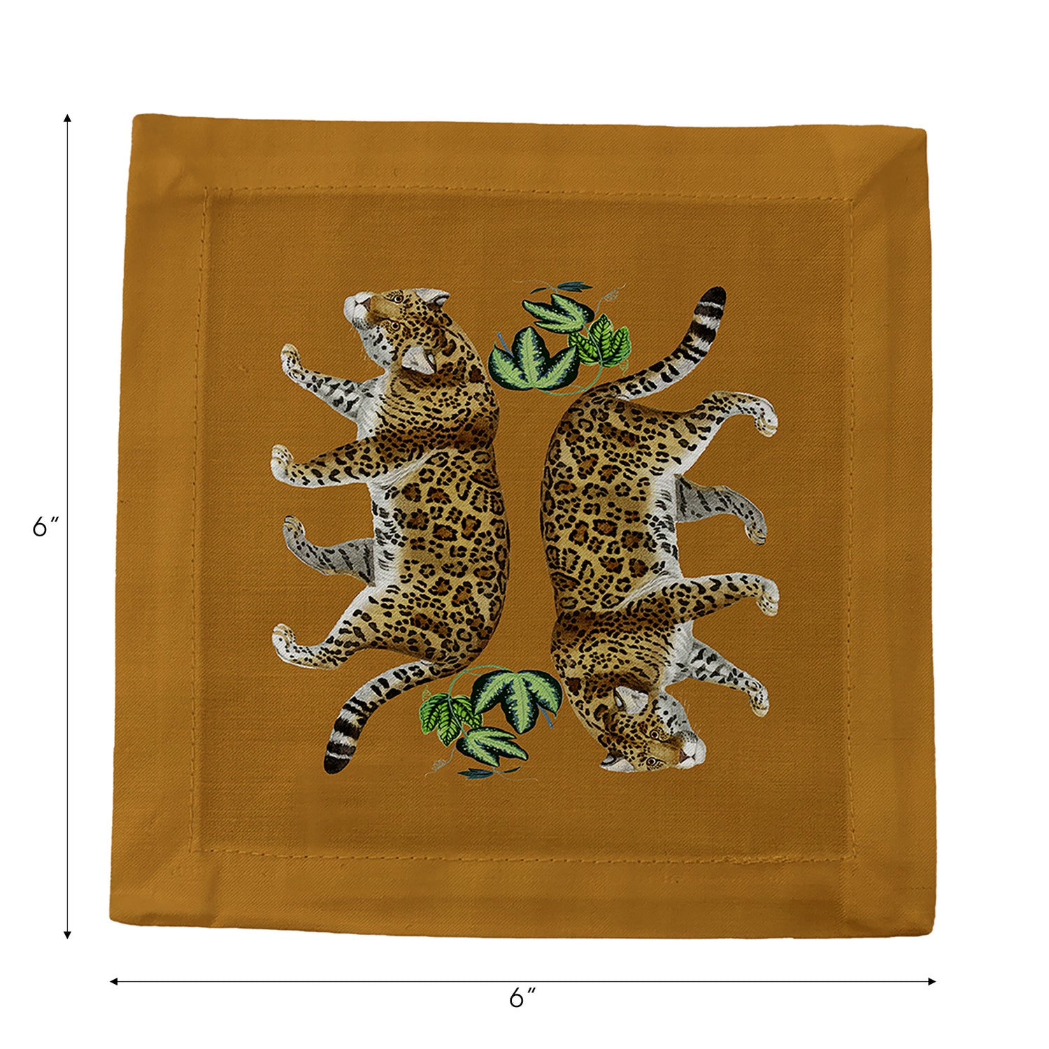 Leopard Seeing Double Cotton Sateen Cocktail Napkins