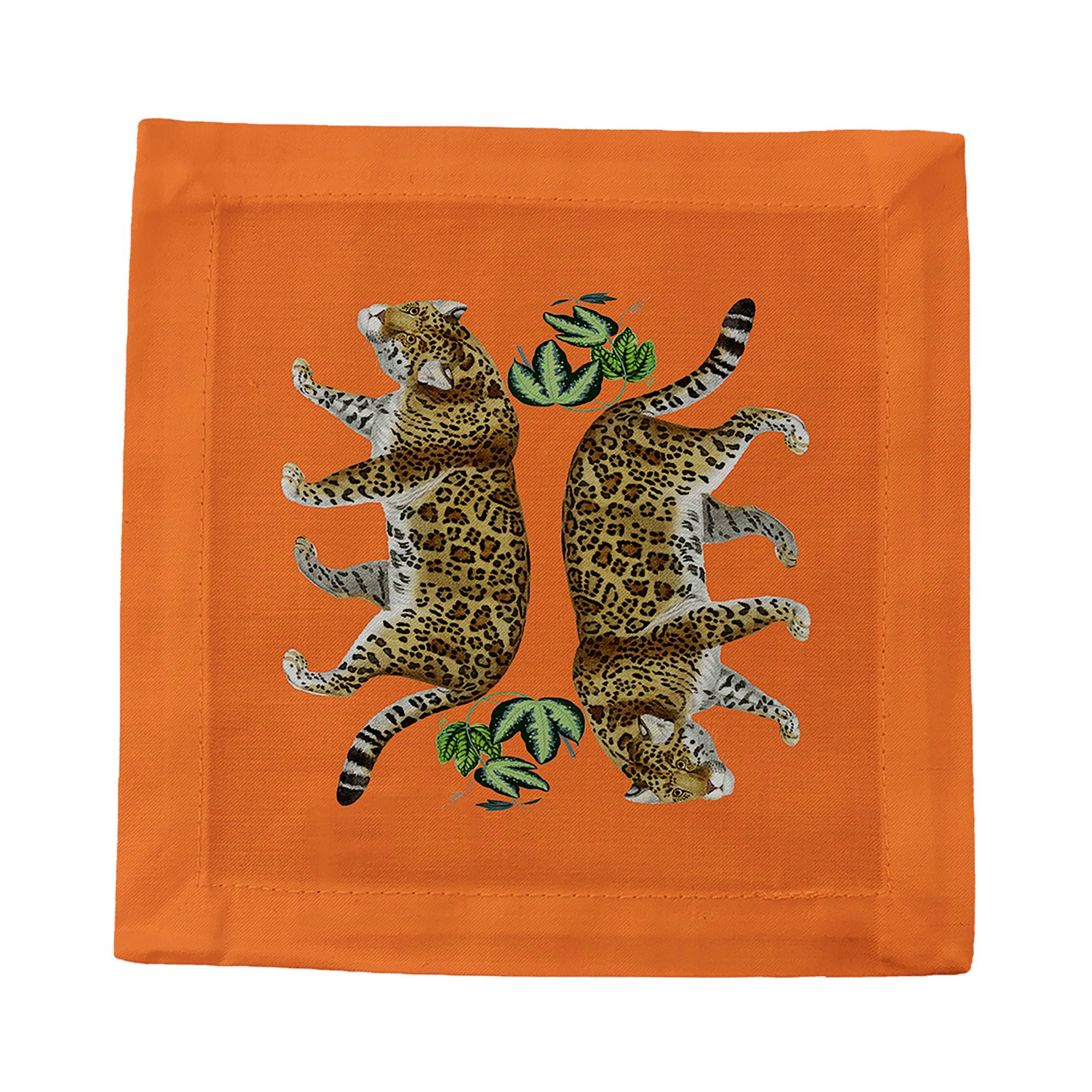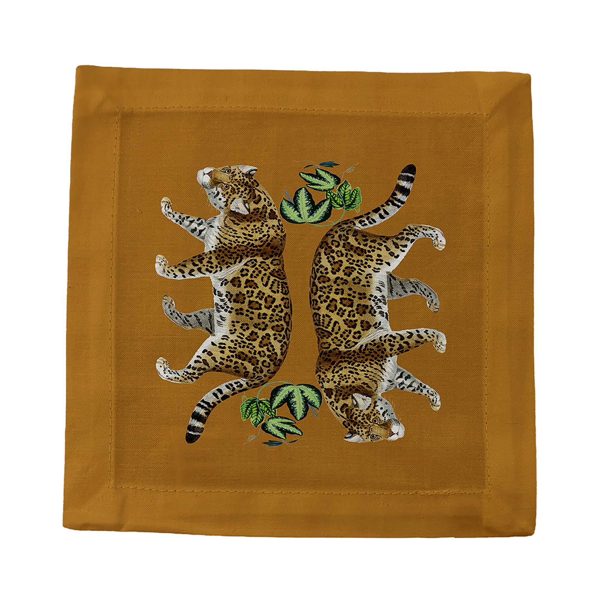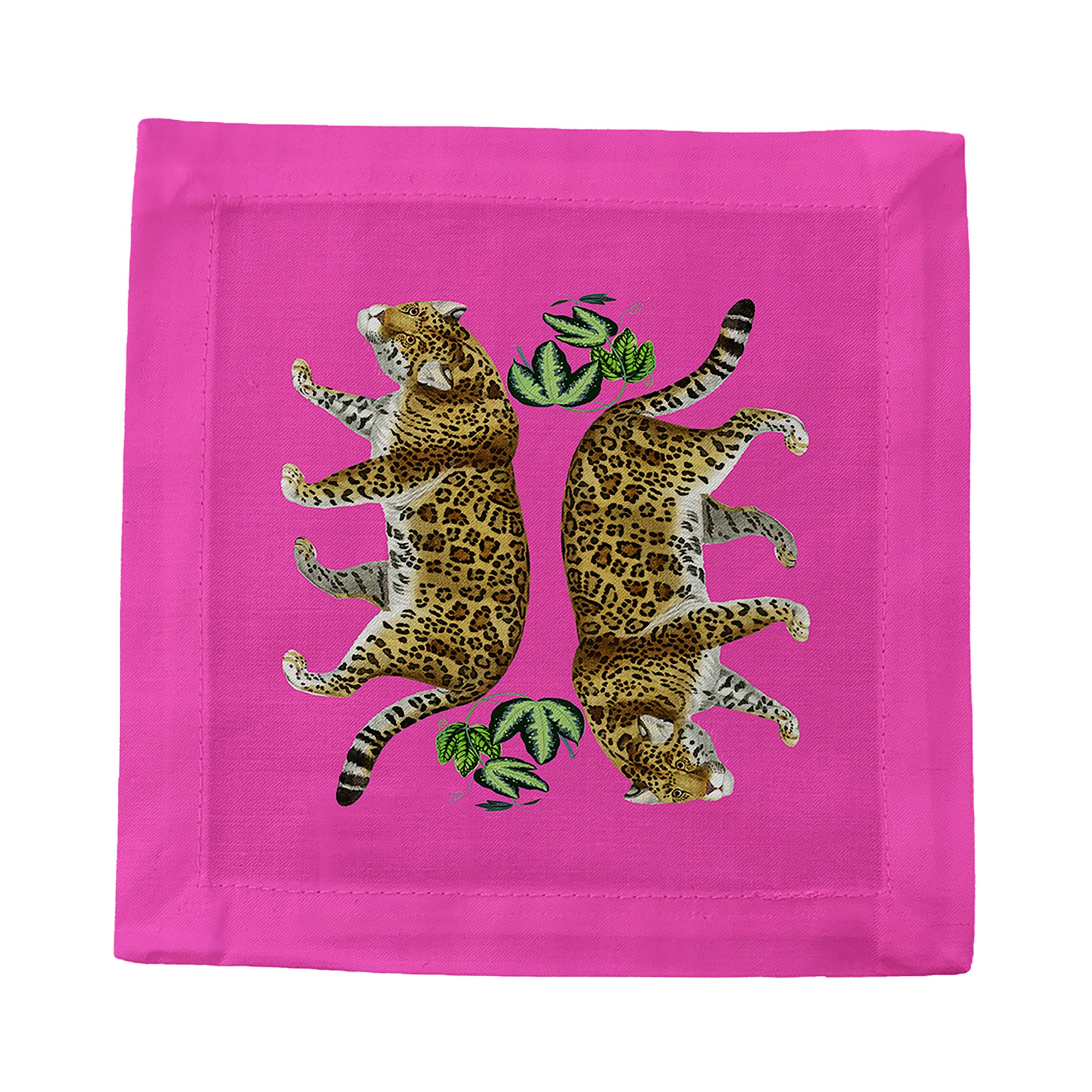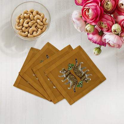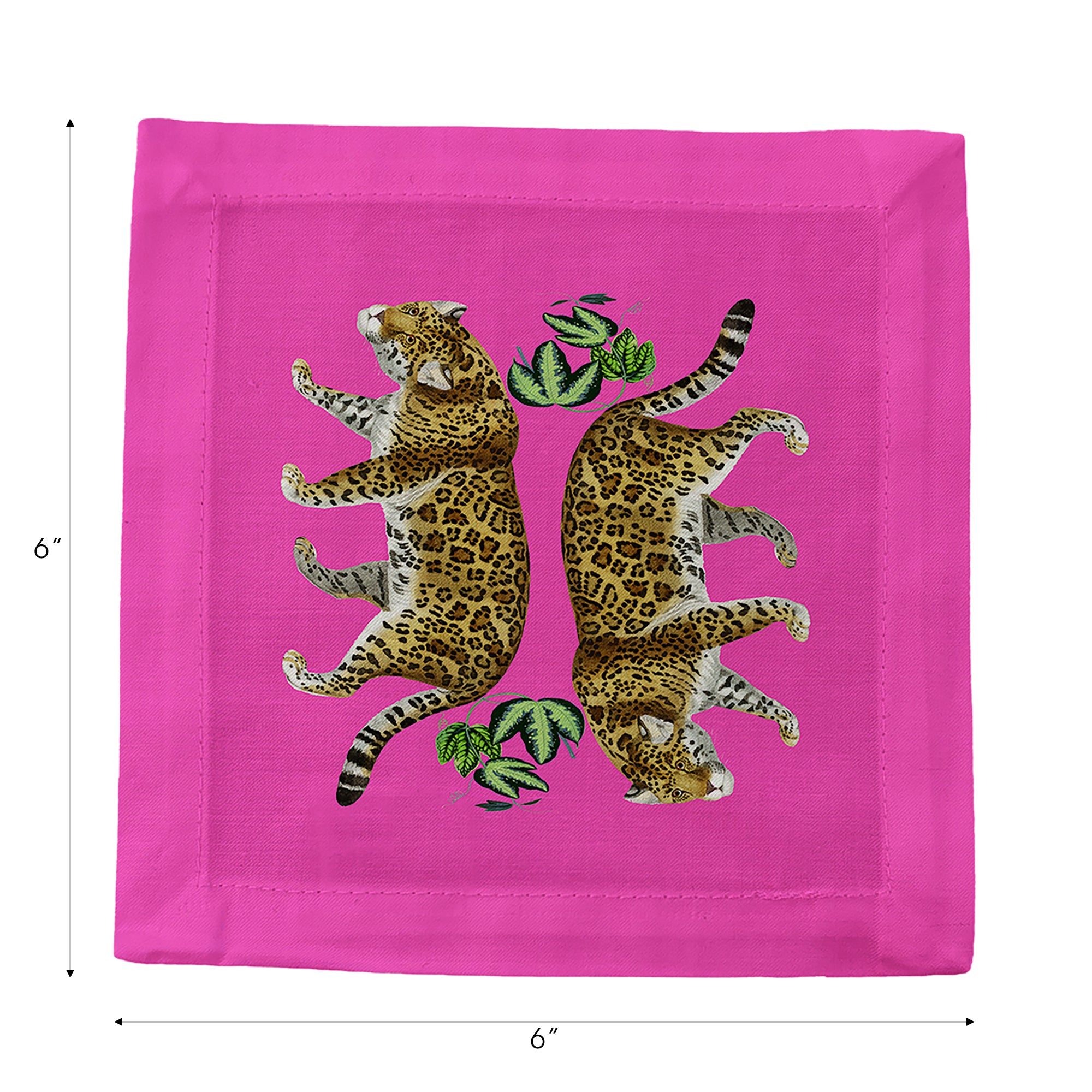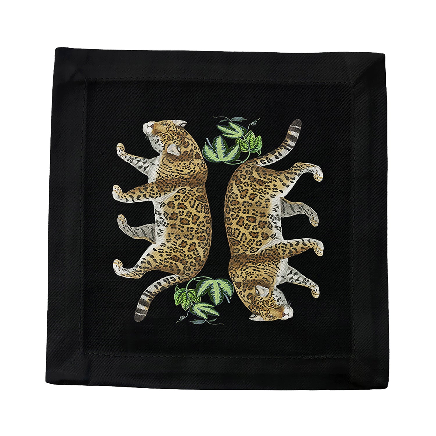Leopard Seeing Double Cotton Sateen Cocktail Napkins