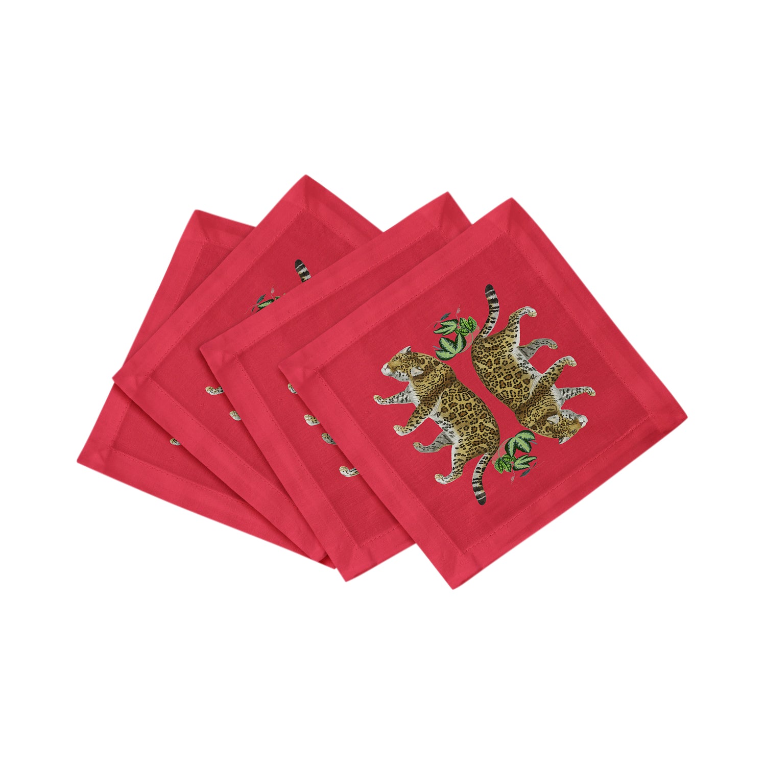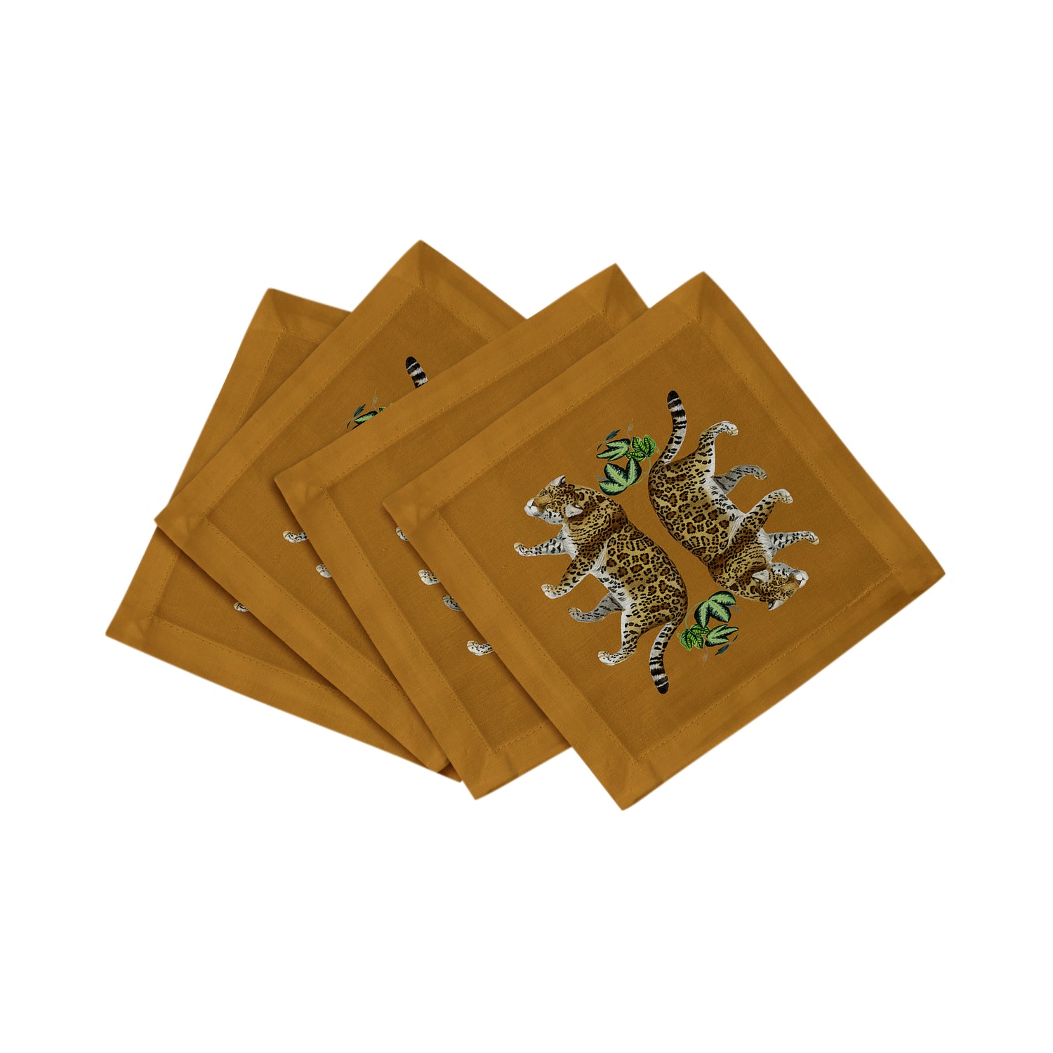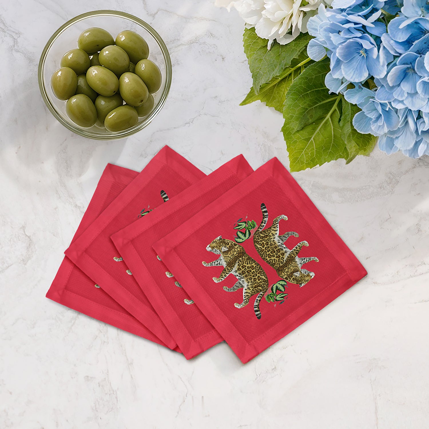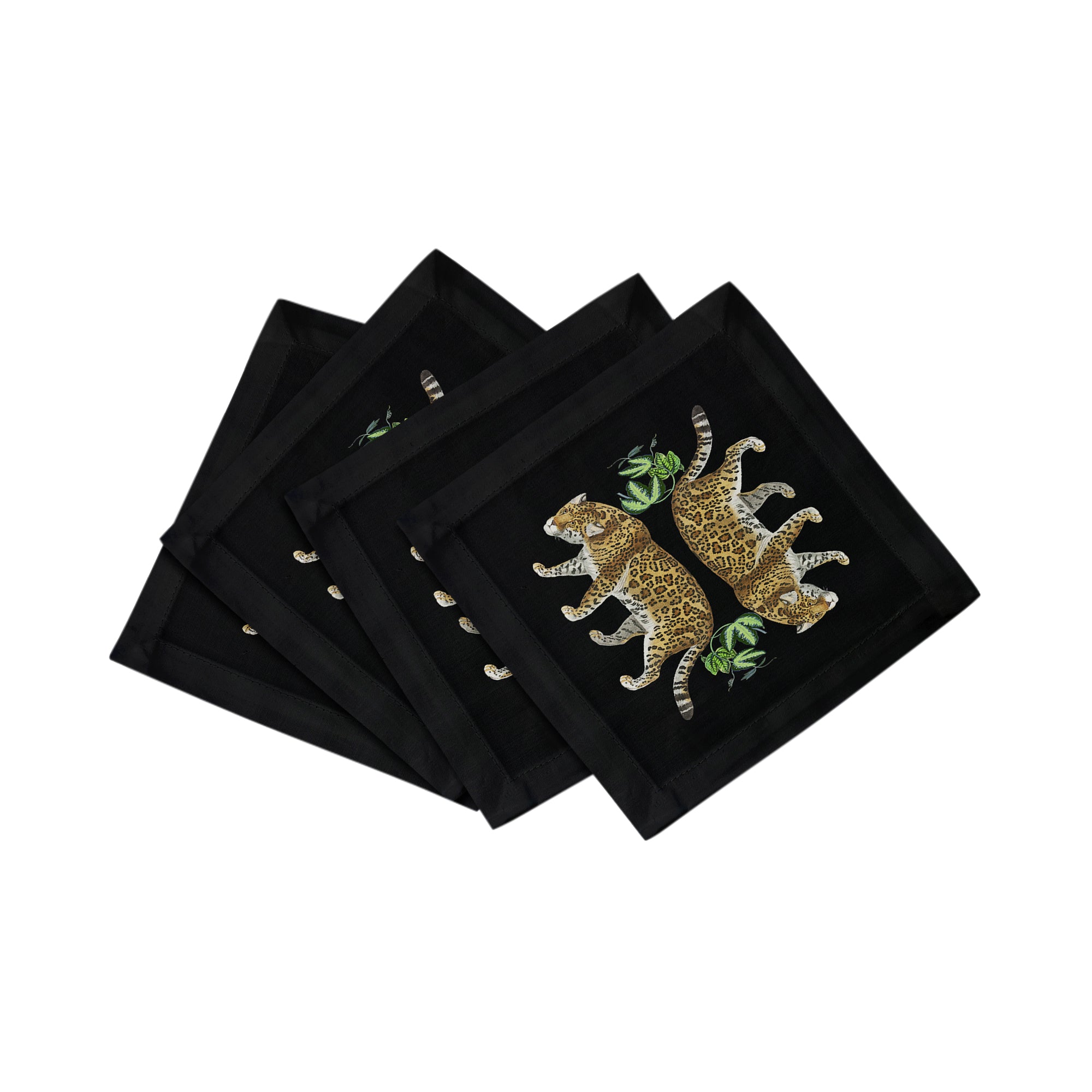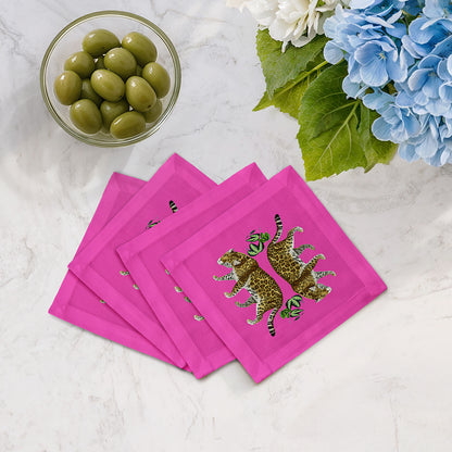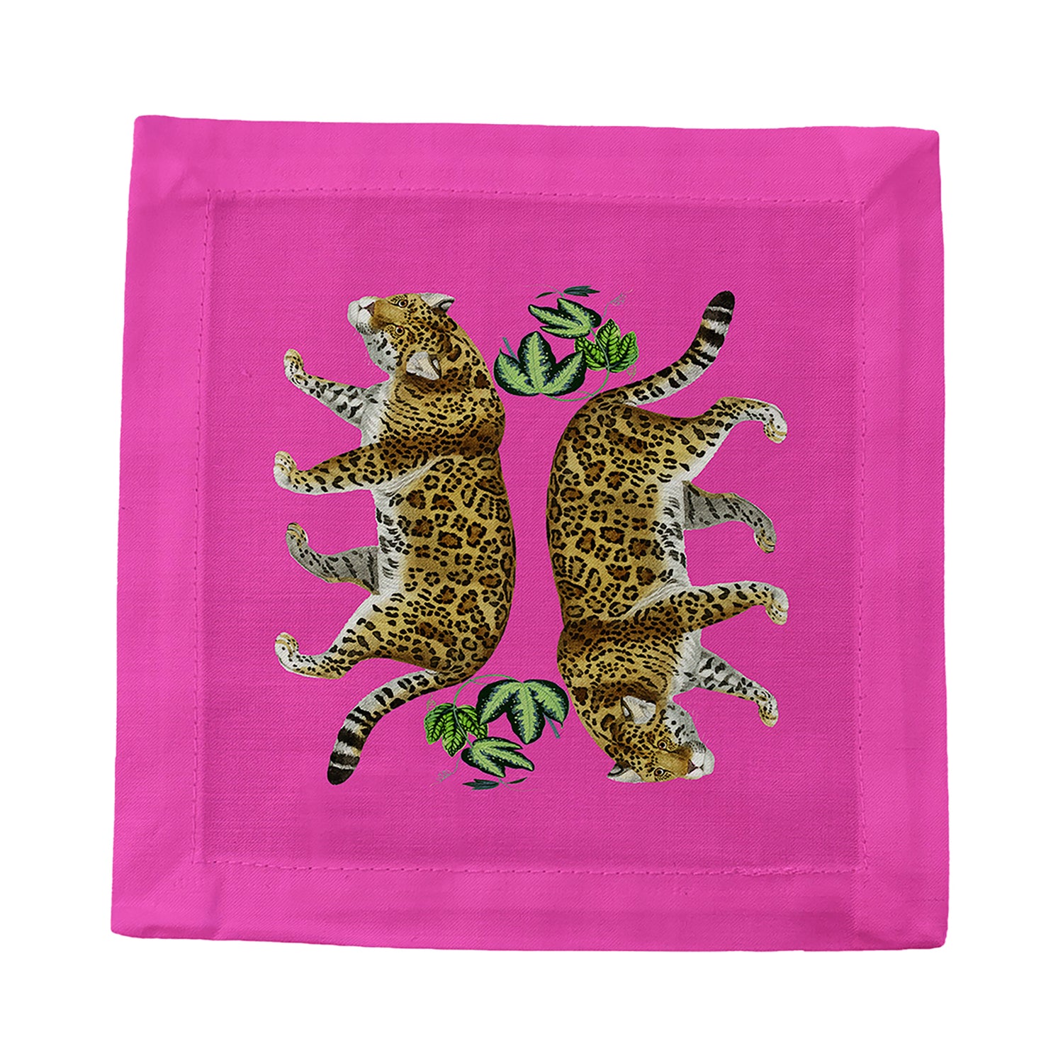 Leopard Seeing Double Cotton Sateen Cocktail Napkins