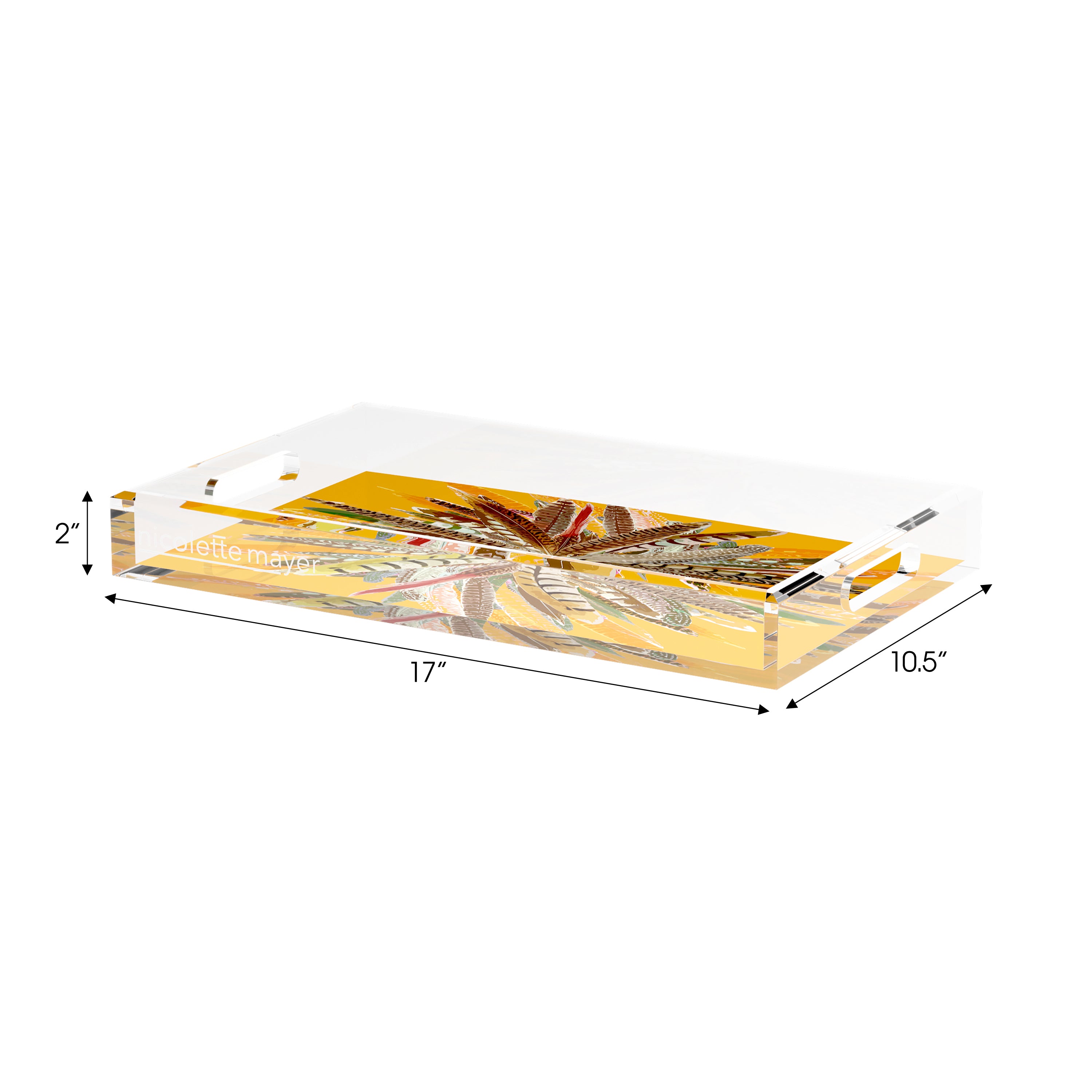 Pheasant Feathers Butternut 22.5X14.5 Acrylic Tray - nicolettemayer.com