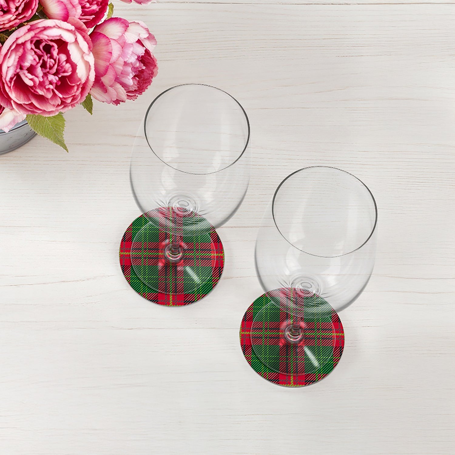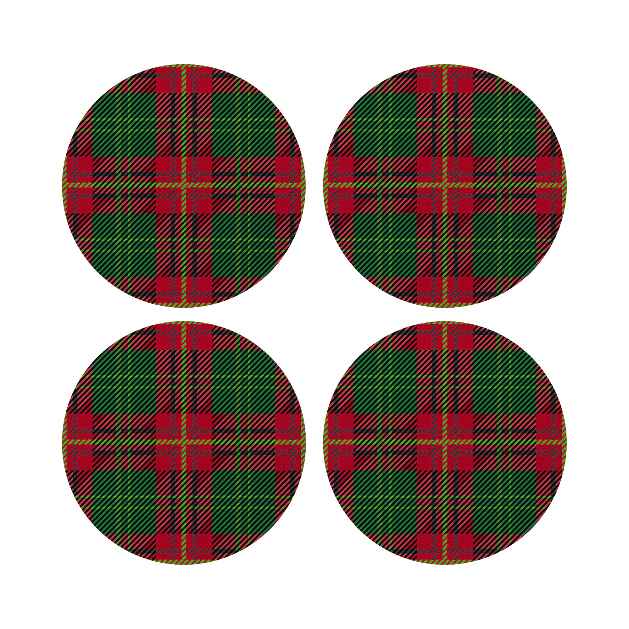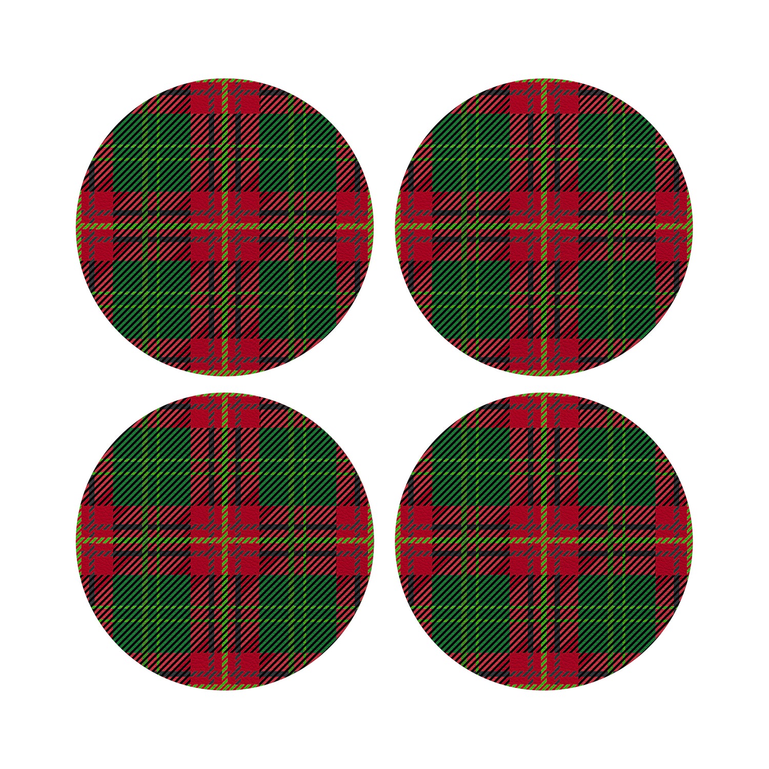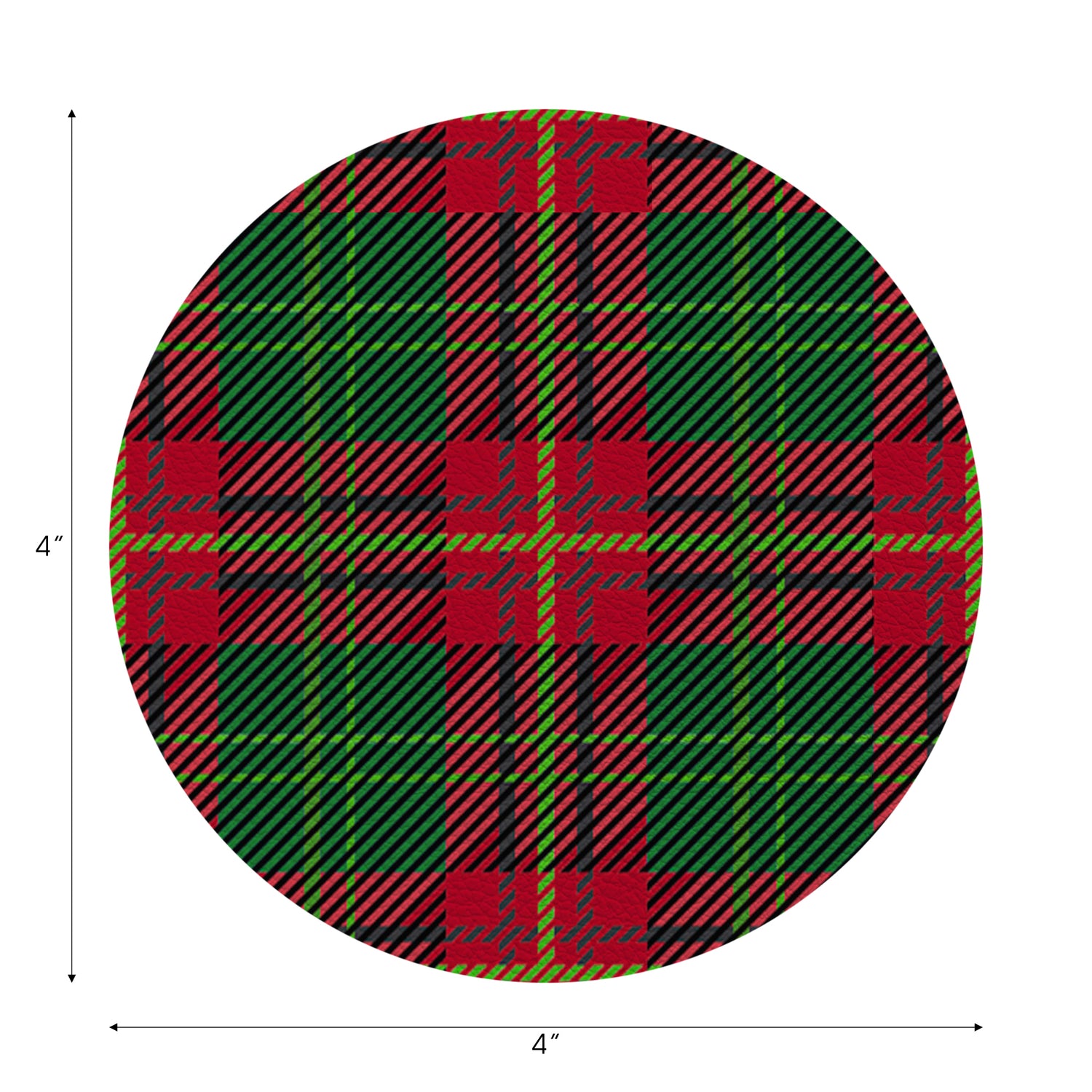A touch of tailored charm arrives with our Tartan Vegan Leather Round Coasters, featuring heritage plaid. Crafted from vegan leather, these coasters are not only stylish but also durable. Perfect for any indoor or outdoor event. Available in sets of 4, 8, or 12, each piece is proudly made in the USA and features a holiday pattern ideal for Christmas gatherings. Decorate your table with seasonal charm and practical elegance.